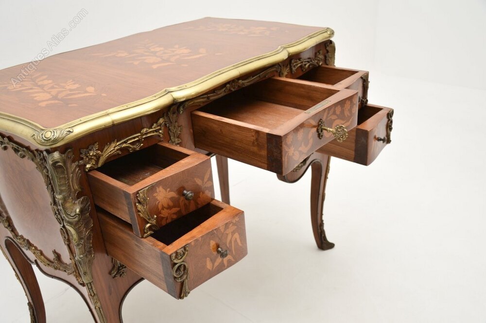 Antique French Inlaid Marquetry Knee Hole Desk