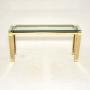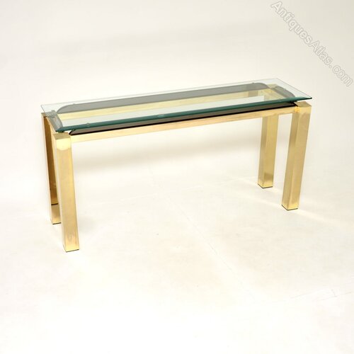 A stylish and very well made vintage Italian brass and glass console side table, dating from the 1970’s.It has a beautiful and quite unusual low design, with chunky legs and a floating appearance to the glass top. It is nicely finished on all sides, so can be used as a free standing item.