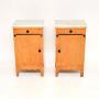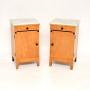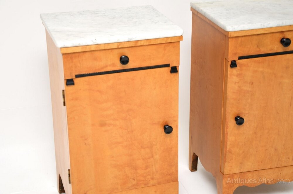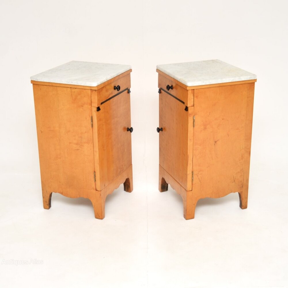 Pair of Antique Satin Birch Marble Top Bedsides