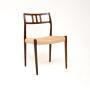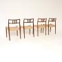 An incredibly stylish and iconic set of four Danish vintage rosewood model 79 chairs by Niels Moller. They were originally designed in 1951, this set dates from around the 1960’s.The solid rosewood frames are beautifully hand crafted, with a sculptural and comfortable design.