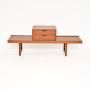 An excellent vintage Scandinavian teak bench by Torbjorn Afdal for Bruksbo. This was made in Norway, it dates from the 1960’s.The quality is outstanding, this is beautifully made with stunning teak veneers, all on a sturdy solid wood construction. The bench is a useful and long width, it has a two drawer sliding chest unit that slides along the bench on felt pads, so can be used in various configurations. This is perfect for various settings around the home and would be very useful as an entry bench or tv stand.