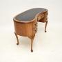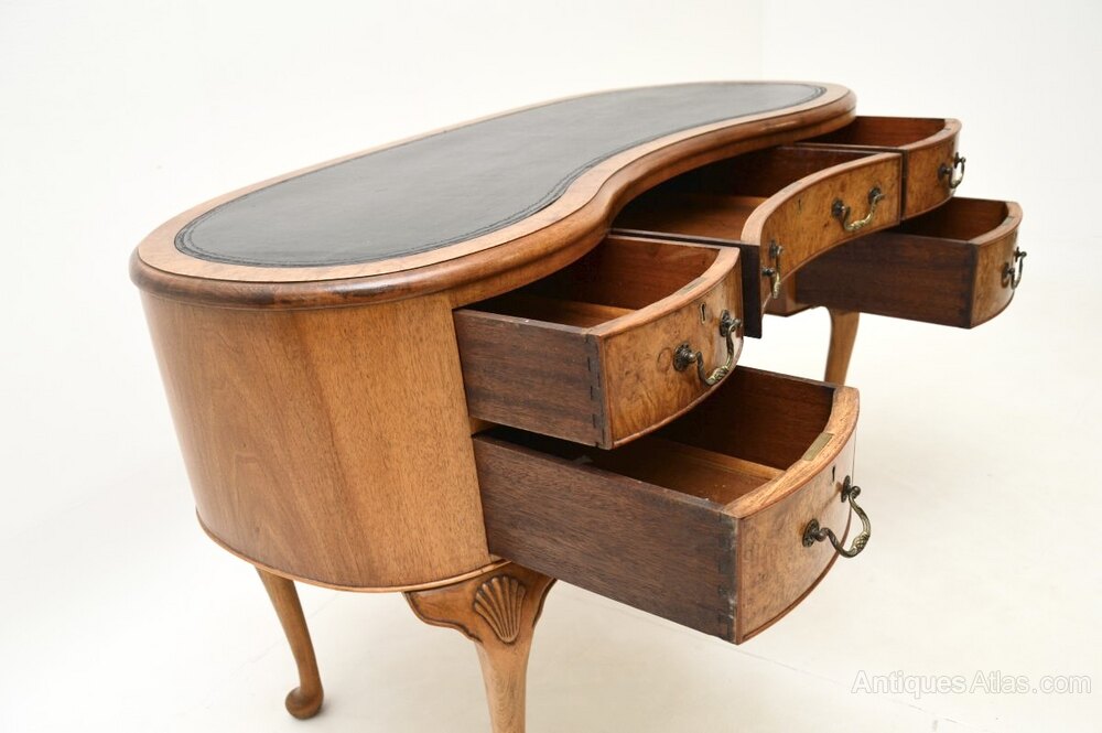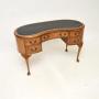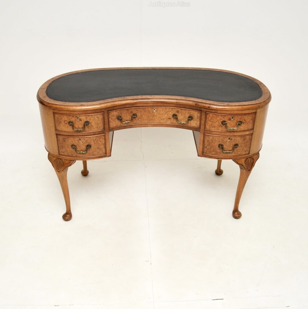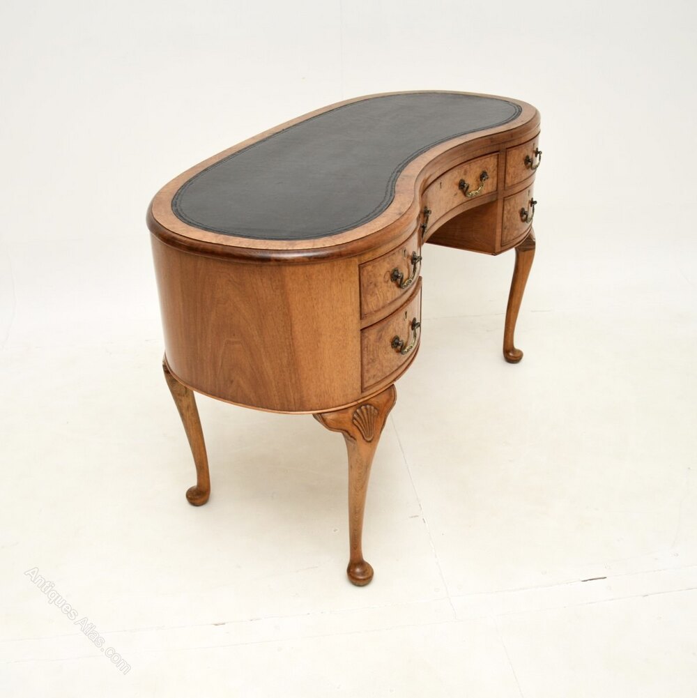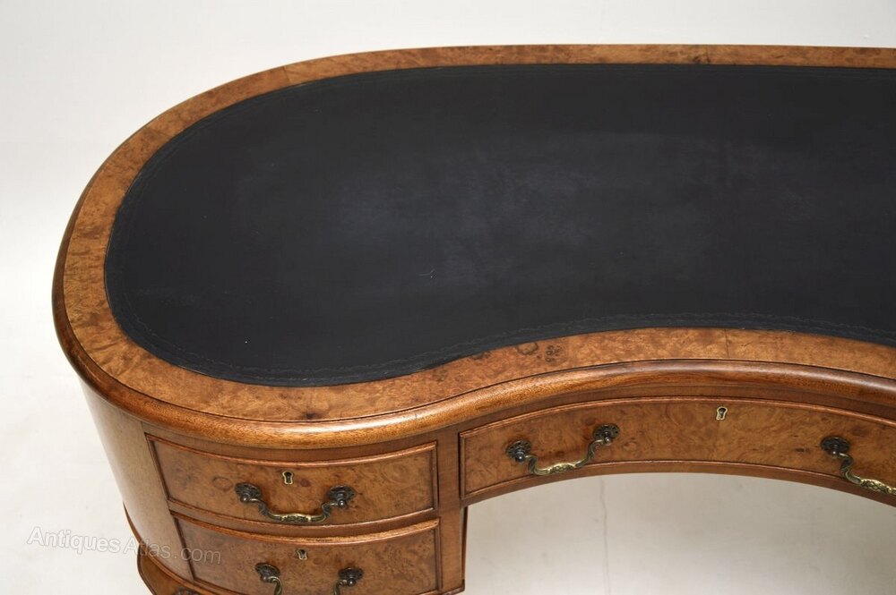 Antique Burr Walnut Leather Top Kidney Shaped Desk