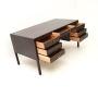 A stylish and extremely well made Danish vintage rosewood desk by O. Bank Larsen Mobelfabrik. It was made in Denmark, it dates from around the 1950’s.It is of outstanding quality, it is a great size with a generous working space and large kneehole. The drawers are finely crafted with hand cut dovetailed joints and high quality brass handles, there are also two rosewood slide shelves which pull out from above the drawers on the front. The reverse is also nicely finished with a central drawer, open central section and two pull down cabinets. There is one key that comes this which works for the drawers and doors.