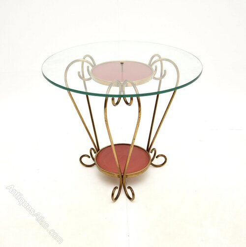 A stylish and extremely well made vintage Italian brass and glass coffee / occasional table. This was recently imported from Italy, it dates from the 1950’s.It is of superb quality, it is a lovely size and is beautifully designed. The solid brass frame has wonderful curves, with lovely red Formica surface at the top and lower tiers. There is a clear toughened glass top that can be removed and is held in place with a brass bolt.