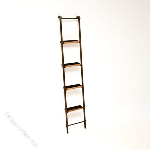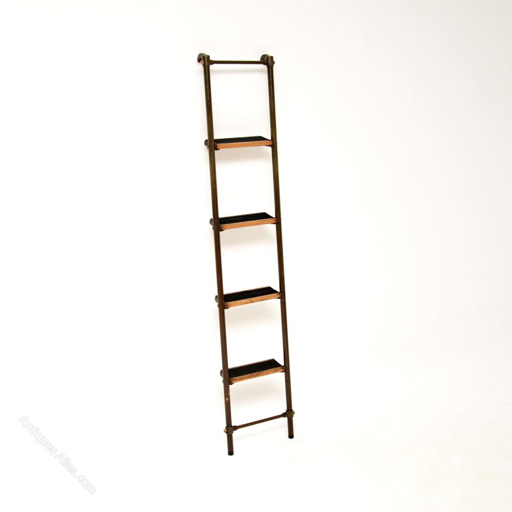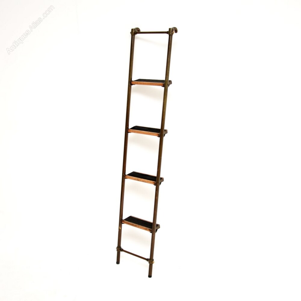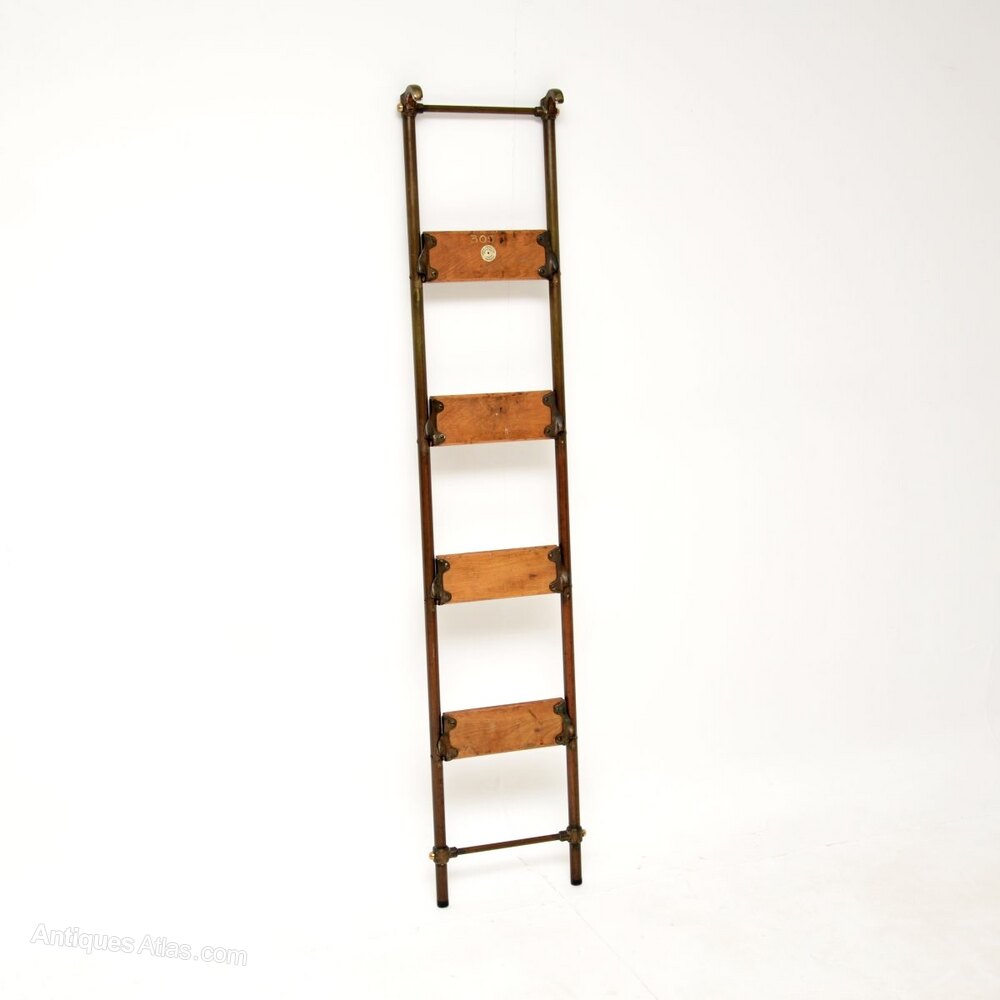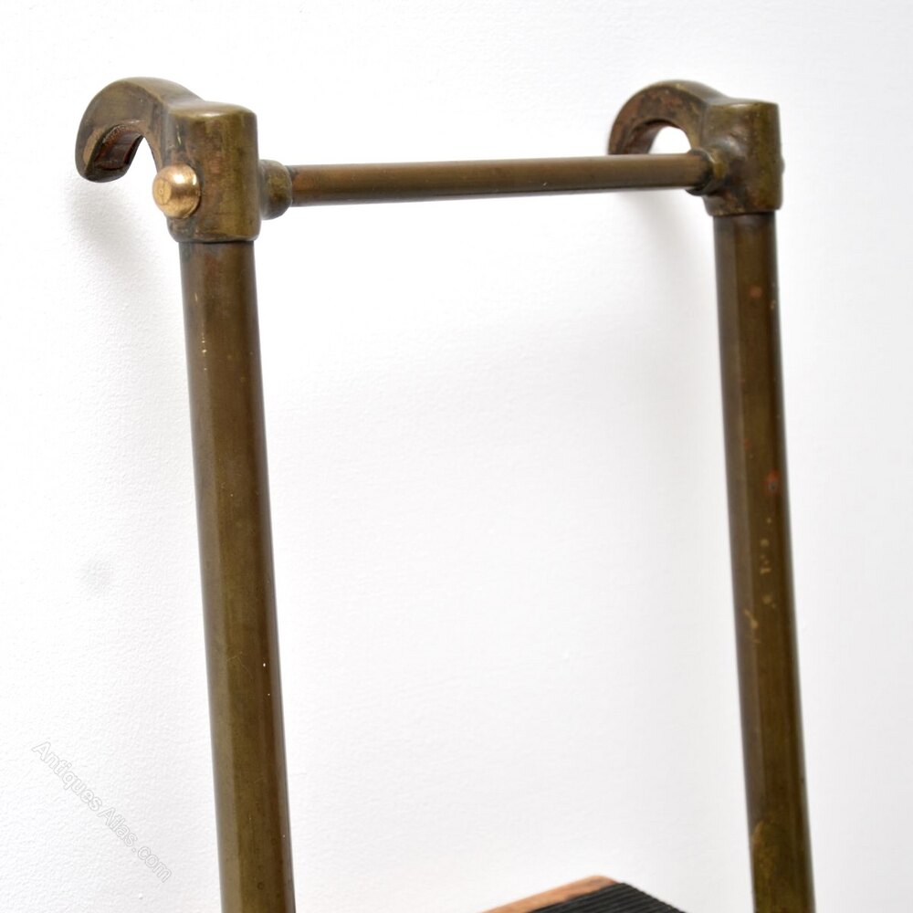 Antique Victorian Brass Library Steps / Ladder