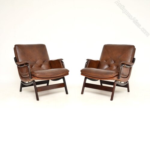 Pair of Vintage Danish Leather Armchairs