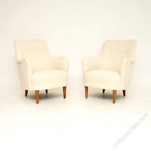 We have had these fully re-upholstered in cream boucle, the condition is amazing throughout. We also have a matching Carl Malmsten sofa in the same cream boucle, seen listed under our other items for sale.