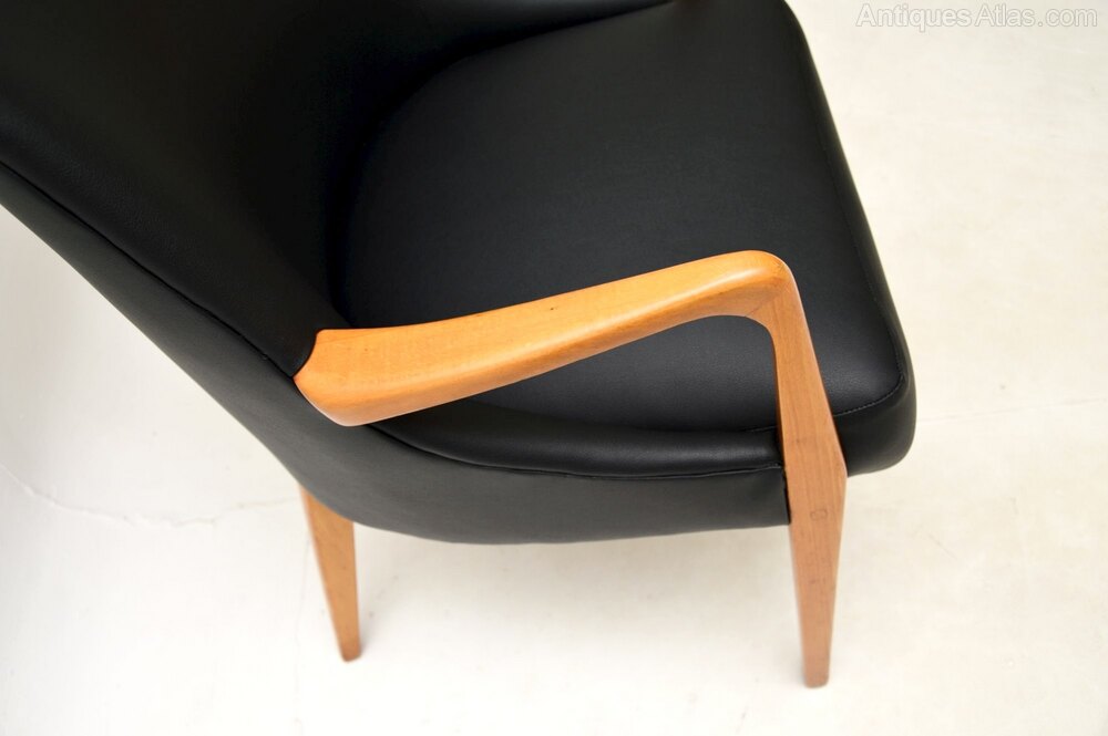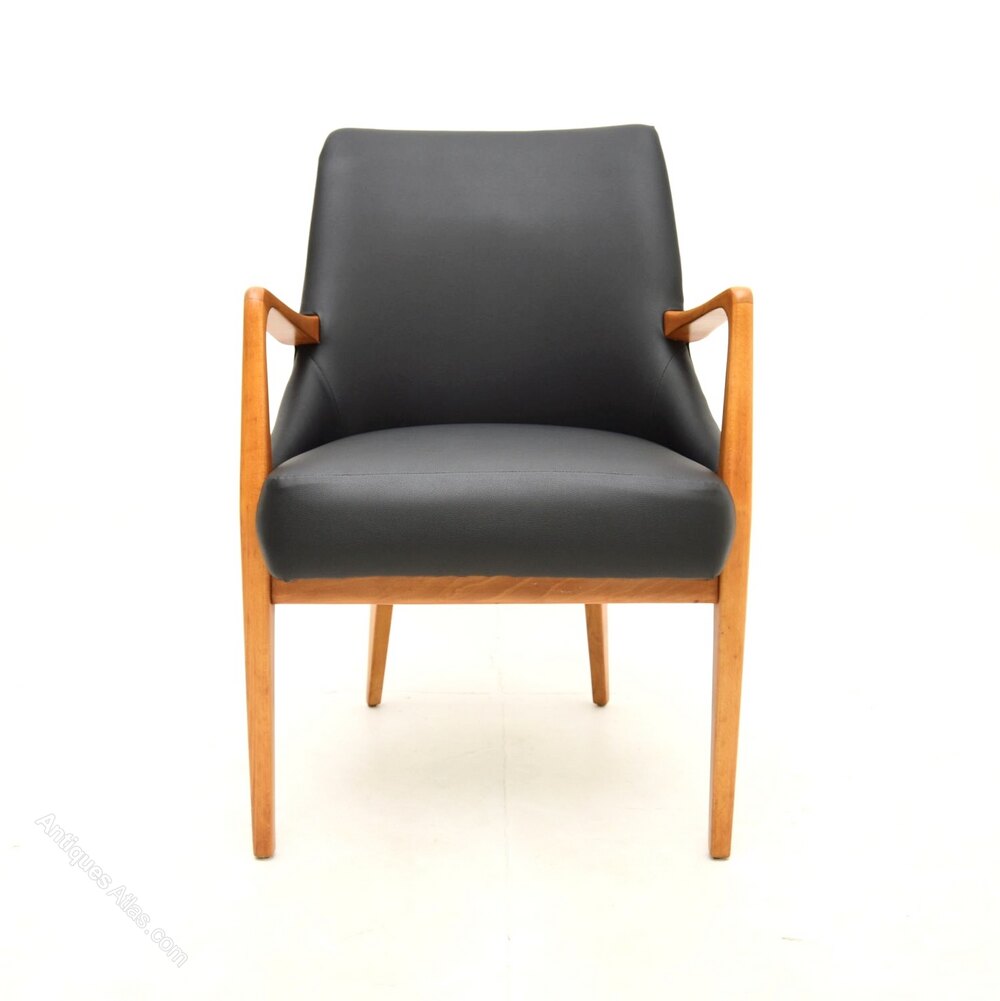 The frame is solid birch, we have had it stripped and re-polished to a very high standard. We have also had this fully re-upholstered in black vinyl, the condition is superb throughout.