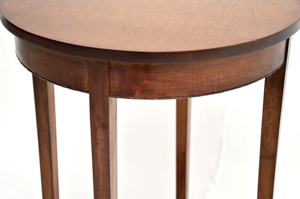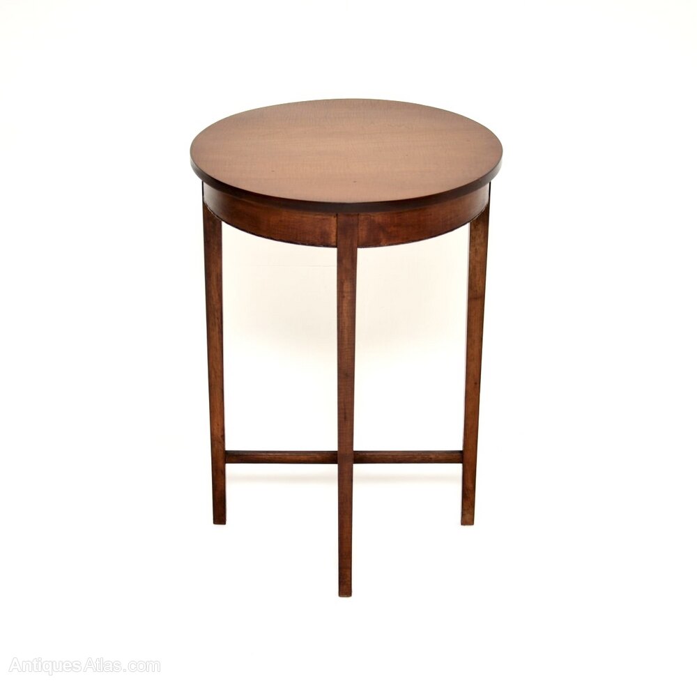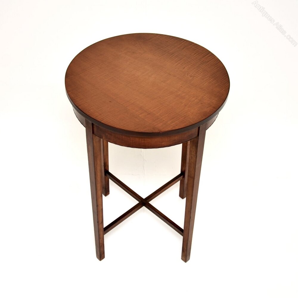 A wonderful antique Edwardian satin wood occasional side table. This was made in England, it dates from the 1900-1910 period.The quality is fantastic, this is a very useful size. The circular top sits on tapered legs with a cross framed stretcher for extra support.