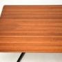 We have had all the wood stripped and re-polished, the table top has had a small area of damage touched out by our restorer, seen in the images. The seats have been re-upholstered in a charcoal coloured wool fabric. The condition is excellent throughout.