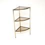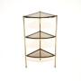 A smart and beautifully designed vintage French brass three tier corner table, dating from the 1970’s.This is of superb quality and is a very useful size. It is perfect for placing in a corner, though is nicely finished on all sides, so could be used as a free standing item.
