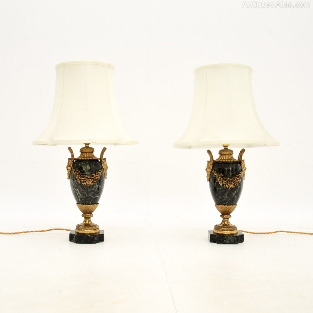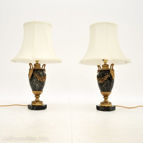 Pair of Antique French Marble & Gilt Bronze Lamps