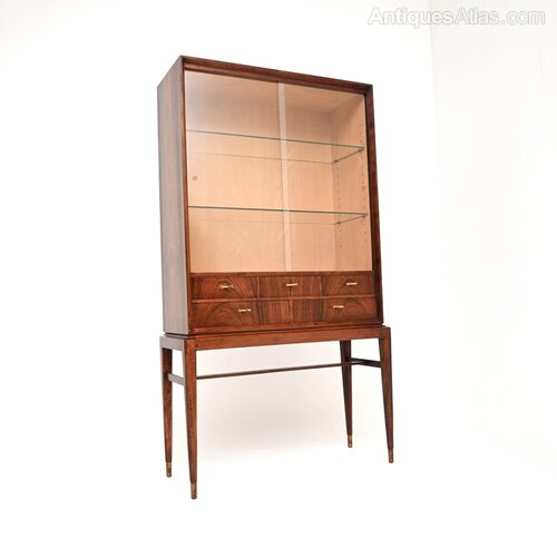 We have had this stripped and re-polished to a very high standard, the glass shelves and doors have been newly made and copied from the original in clear toughened glass. The condition is immaculate throughout.