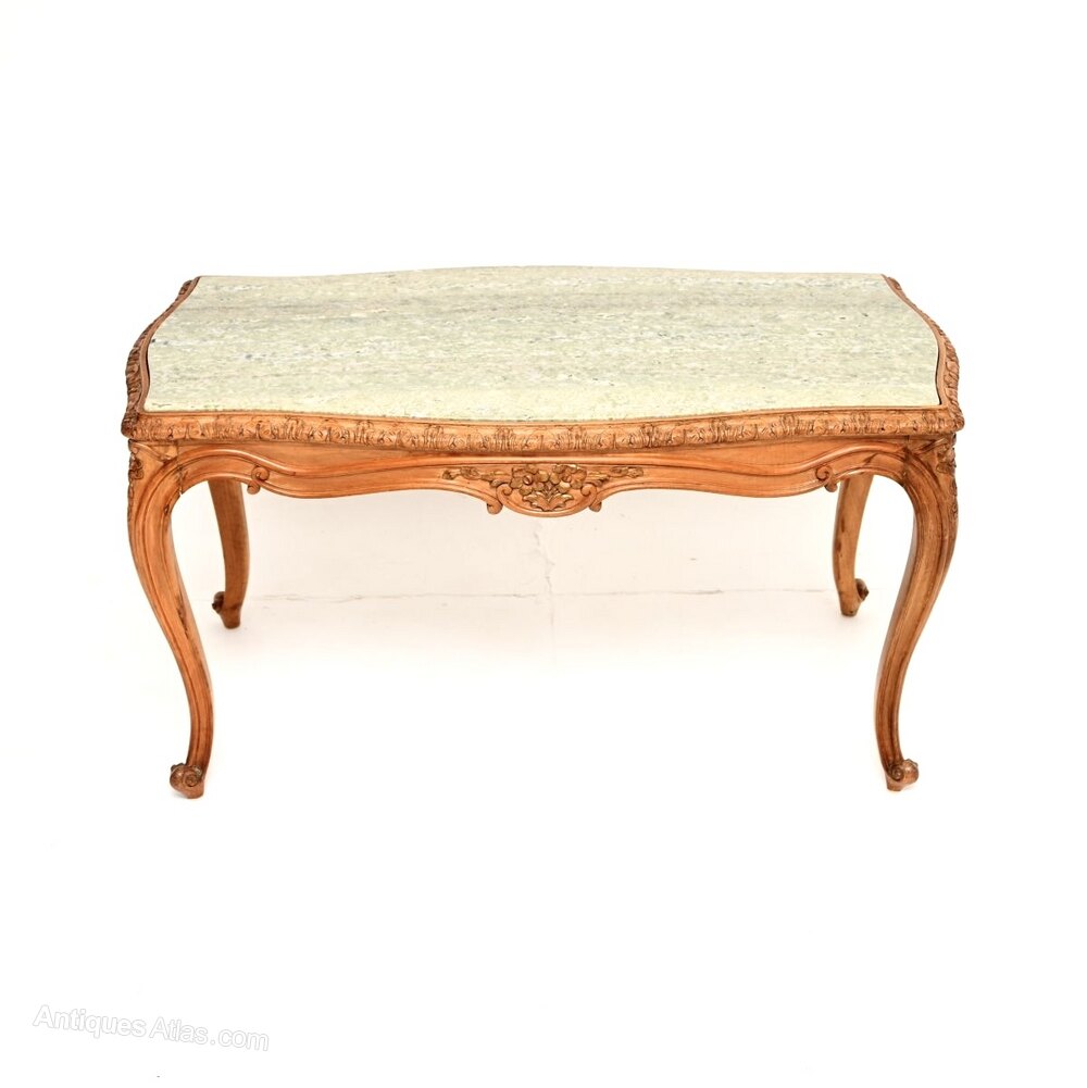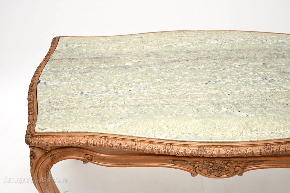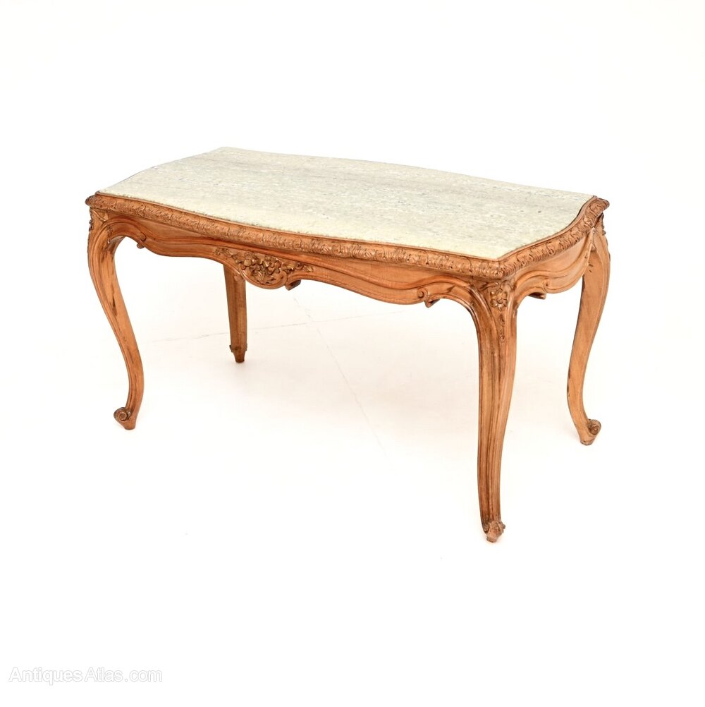 Antique French Carved Walnut Marble Top Coffee Table