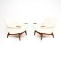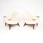 We have had the teak stripped and re-polished to a very high standard, and they have been fully re-upholstered in a cream boucle fabric. The condition is superb throughout.