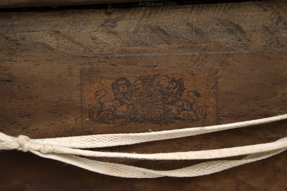 We have had this re-polished, the condition is excellent for its age. As well as being carved with a date and location on the back, there is also an original label with a coat of arms.
