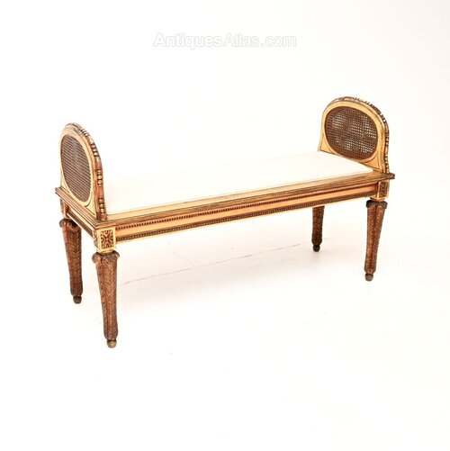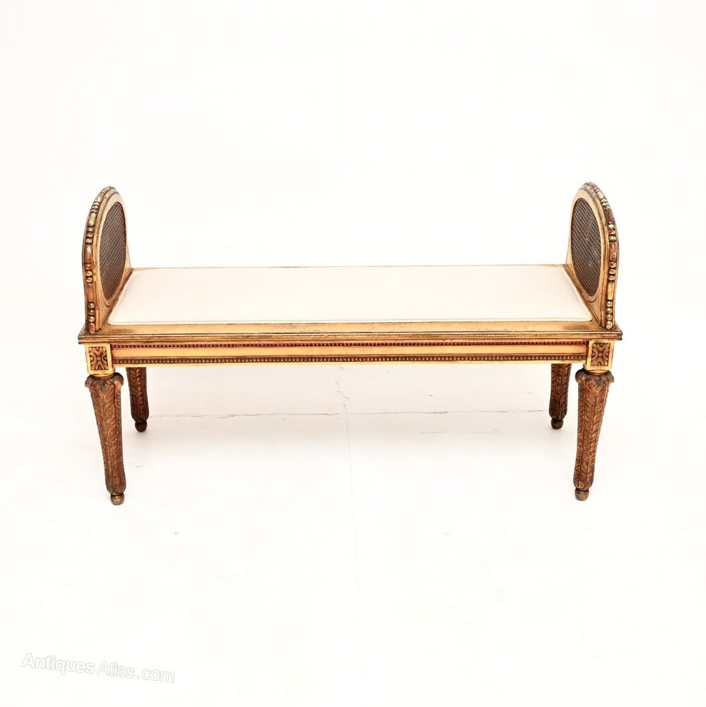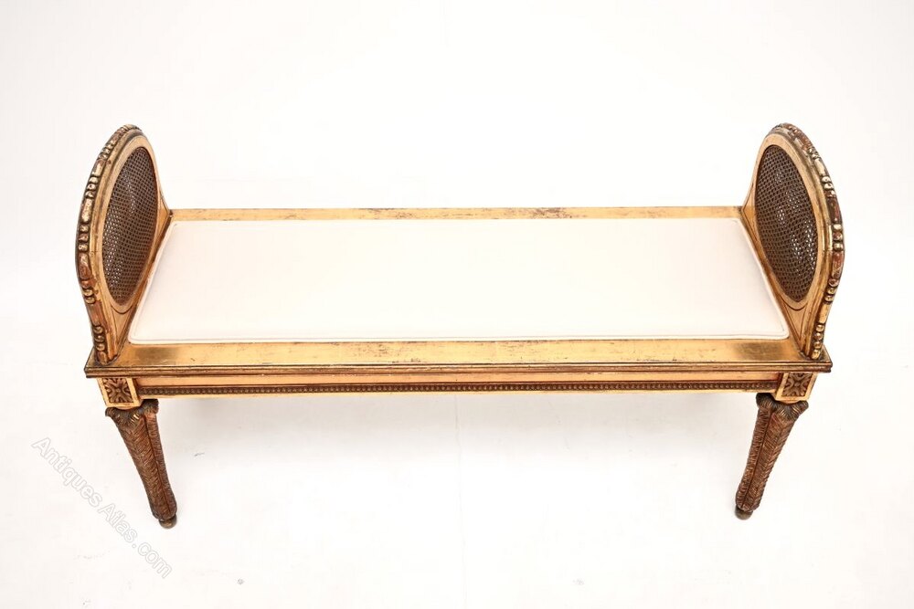 We have had the frame gently revived and restored by our gilding specialist, the seat base has also been re-upholstered in a cream cotton fabric. The condition is excellent for its age, with just the right amount of patina and surface wear.