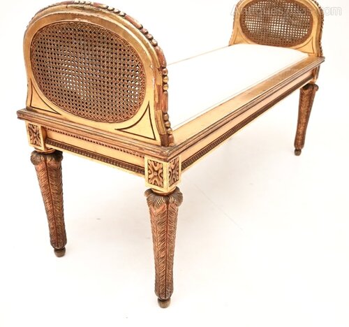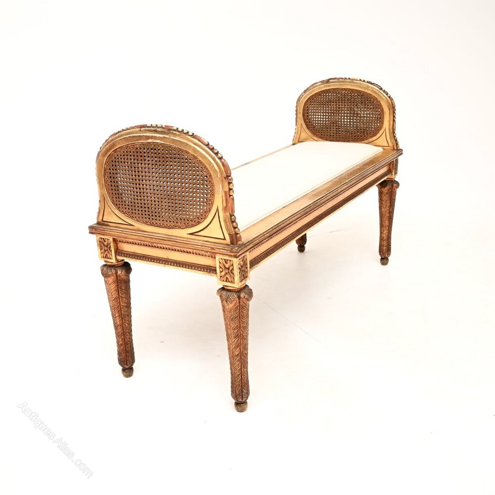 An absolutely stunning antique French carved gilt wood stool of the highest order. This was made in France, it dates from around the 1890-1910 period.It is of amazing quality, with beautiful and intricate carving throughout. It is a lovely size, petite and elegant, yet sturdy and comfortable for two. This has a gorgeous shape sitting on beautifully carved legs, the sides are raised with beaded edges, and have double caning on each panel.