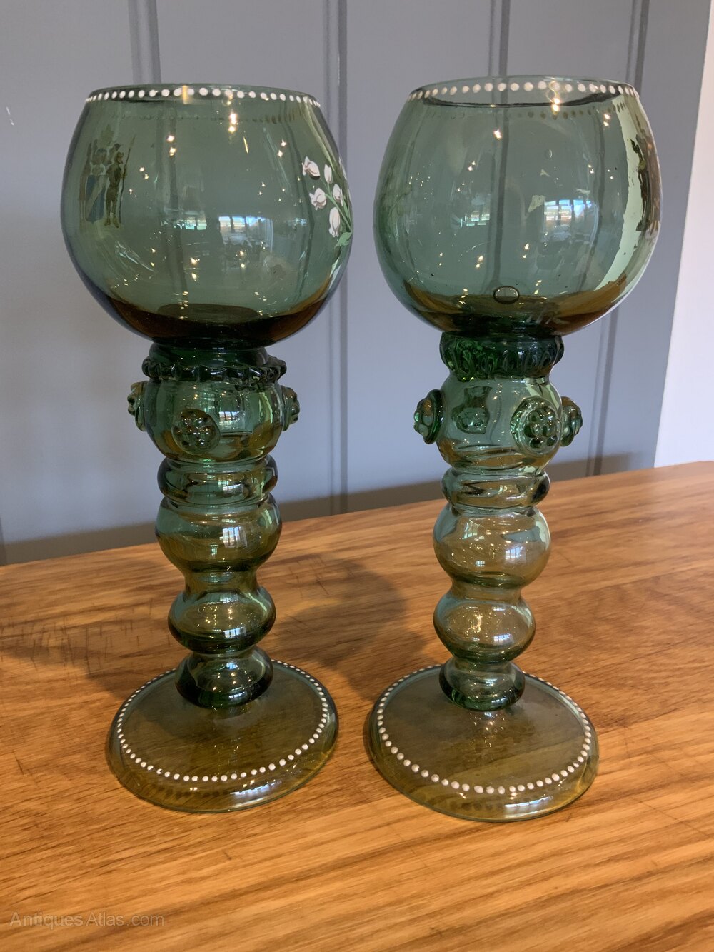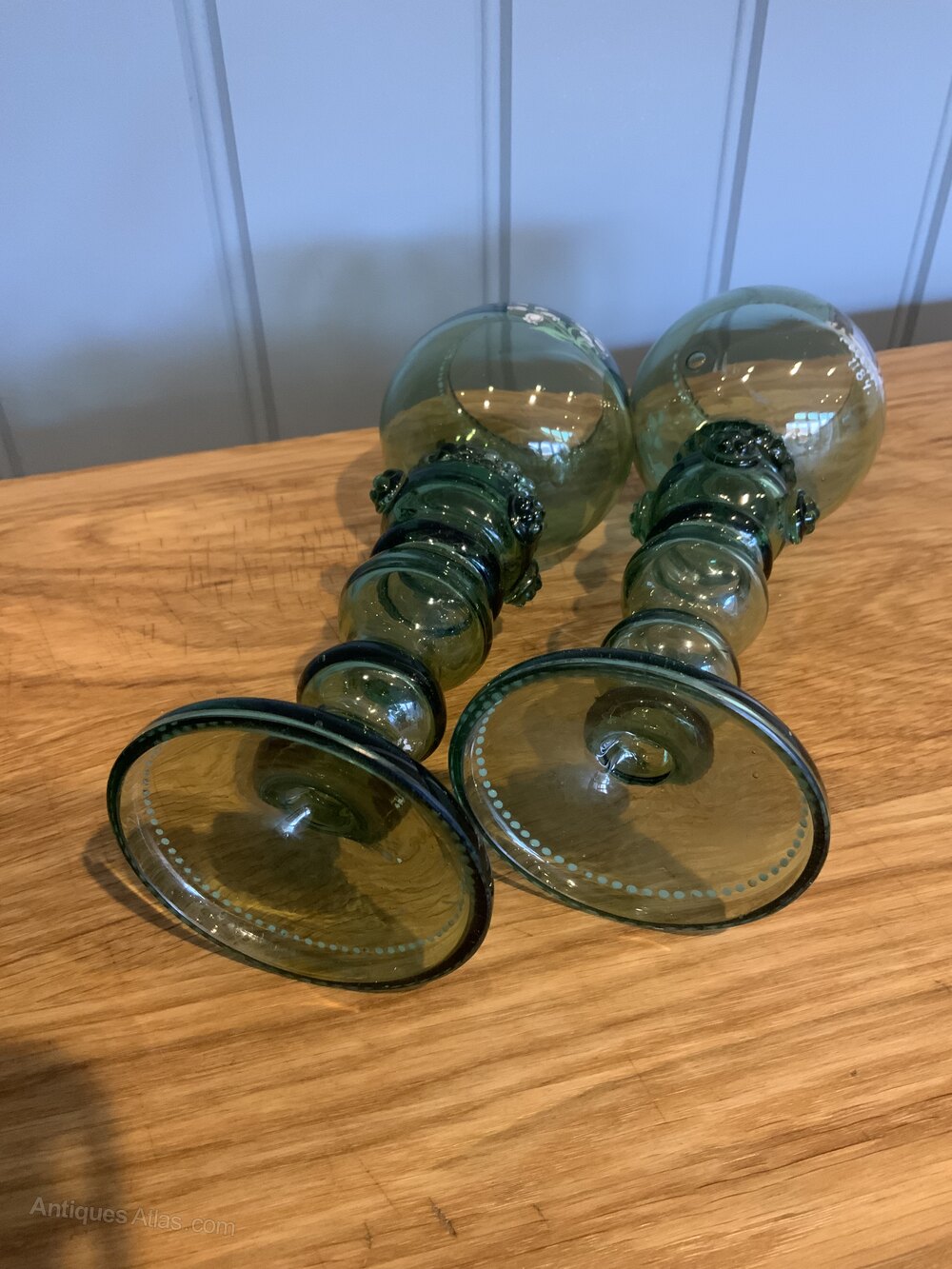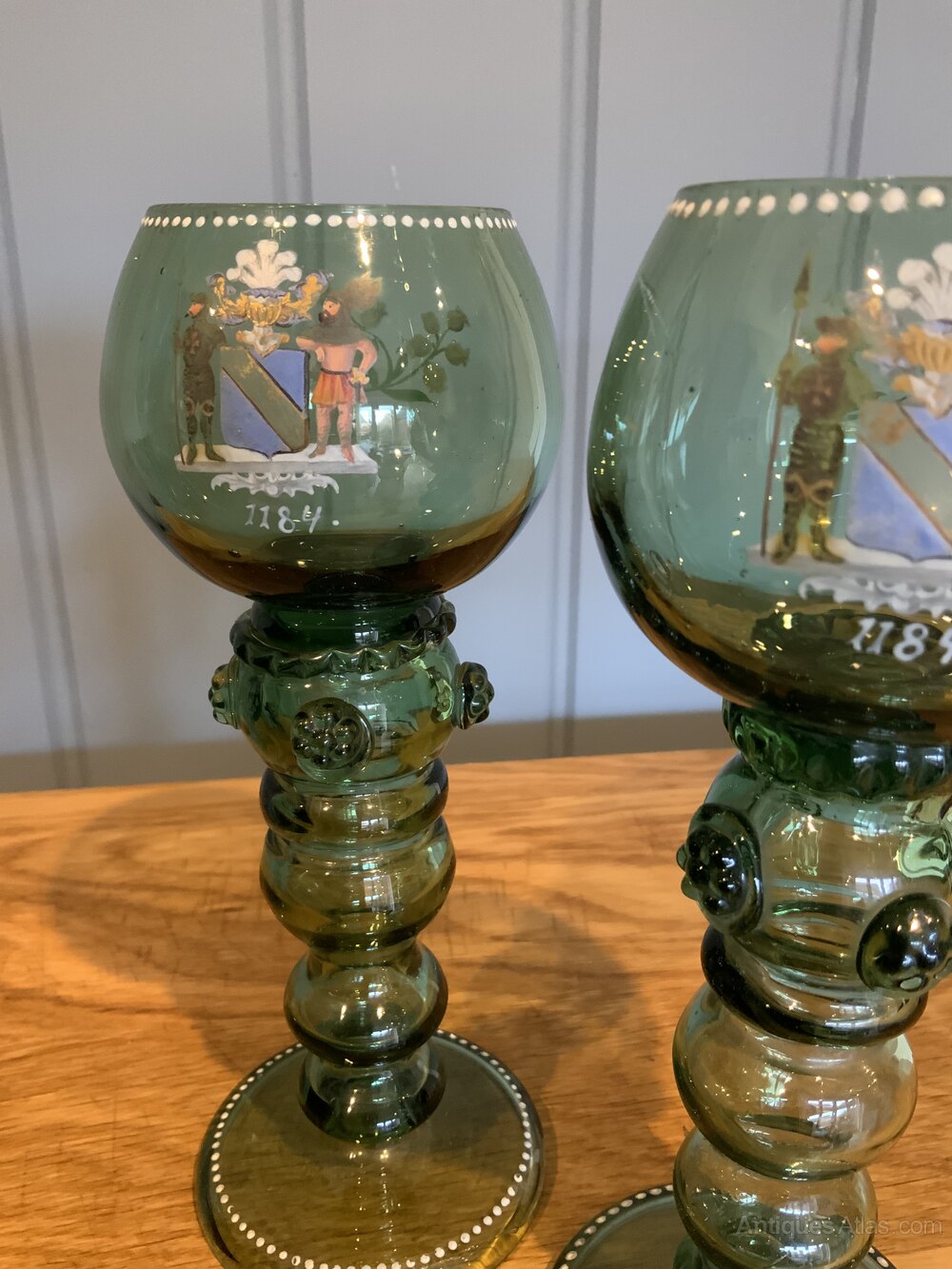 Pair of German Armourial Green Glass Roemers/GobletsHeavy thick glass