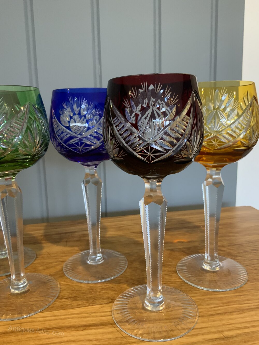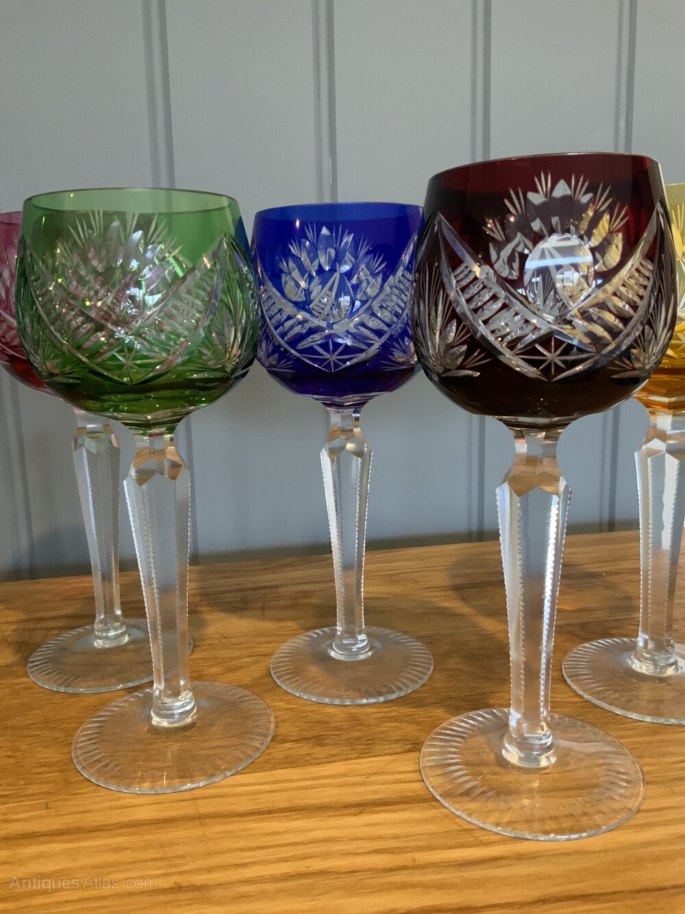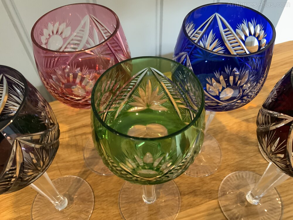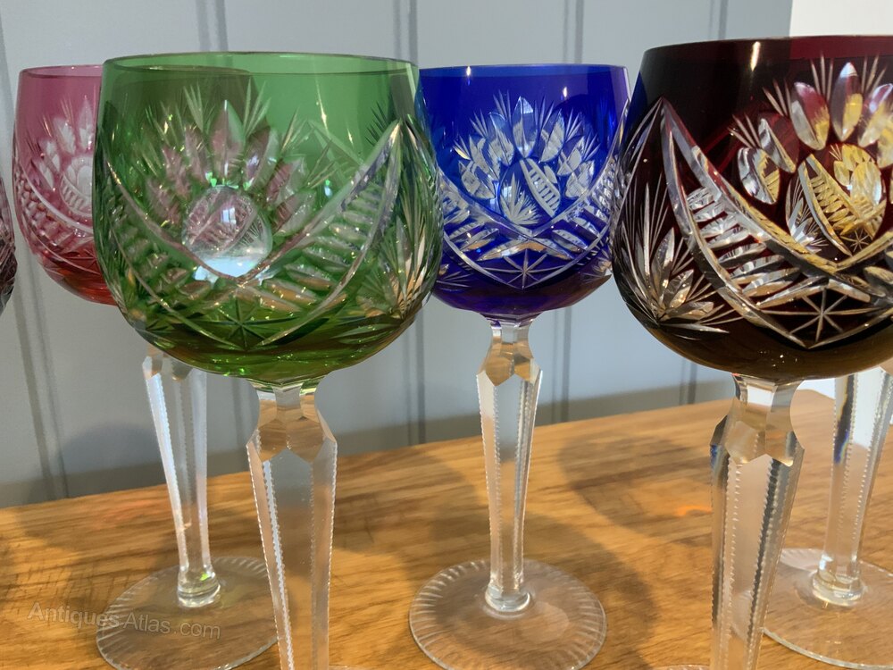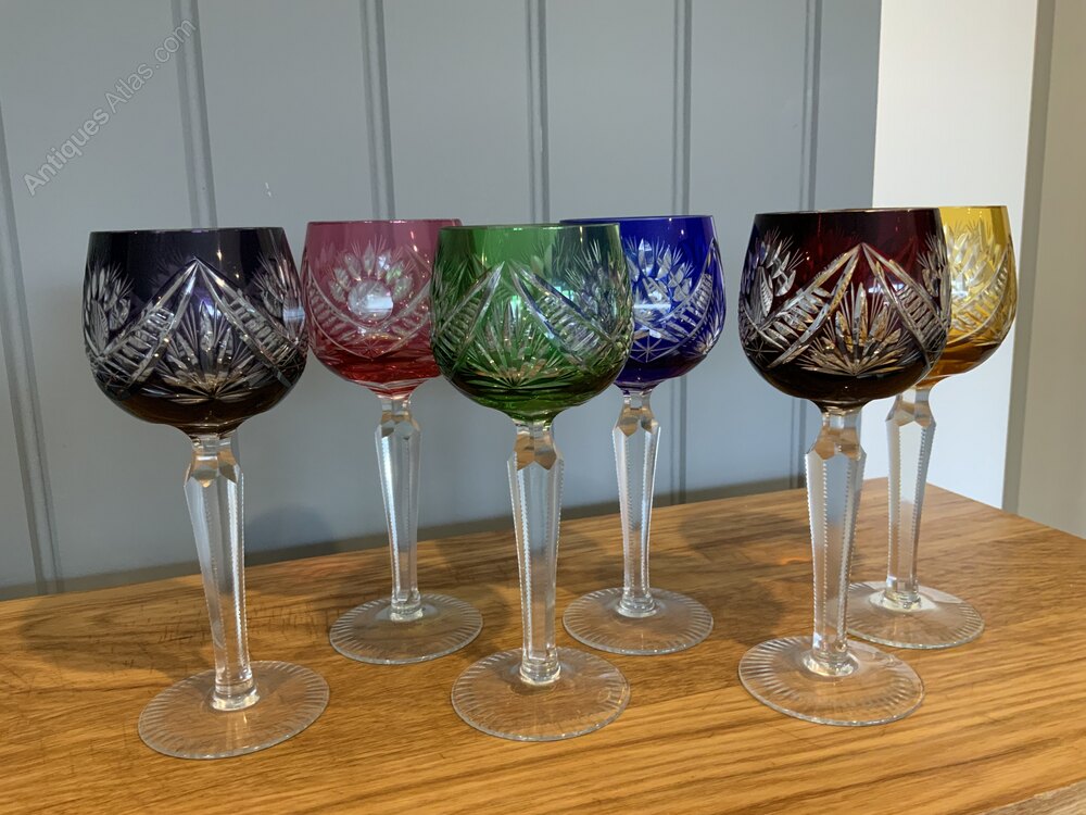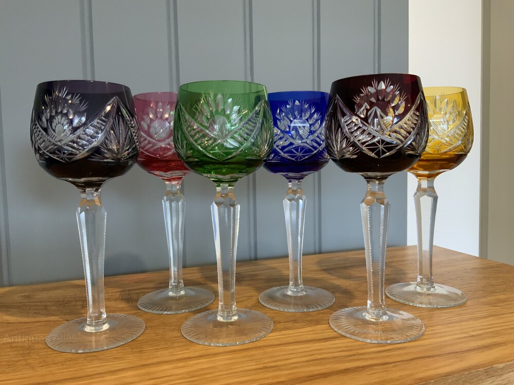 Set of Six Bohemian Cut to Clear Crystal Wine GlassesHand Cut Crystal Glass in six colours