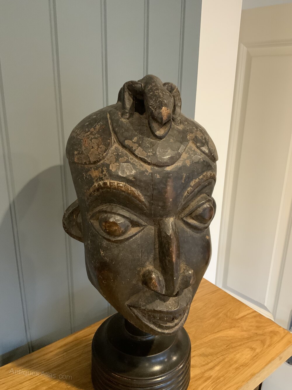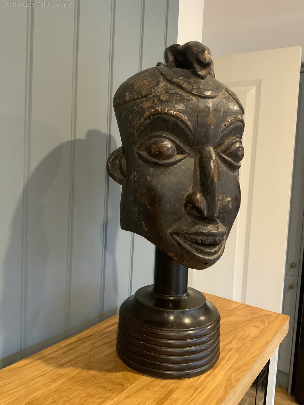Tribal Art - Stunning Bamileke Helmet Mask on a Turned StandHeight with stand 55cms (Hardwood Heavy stand)