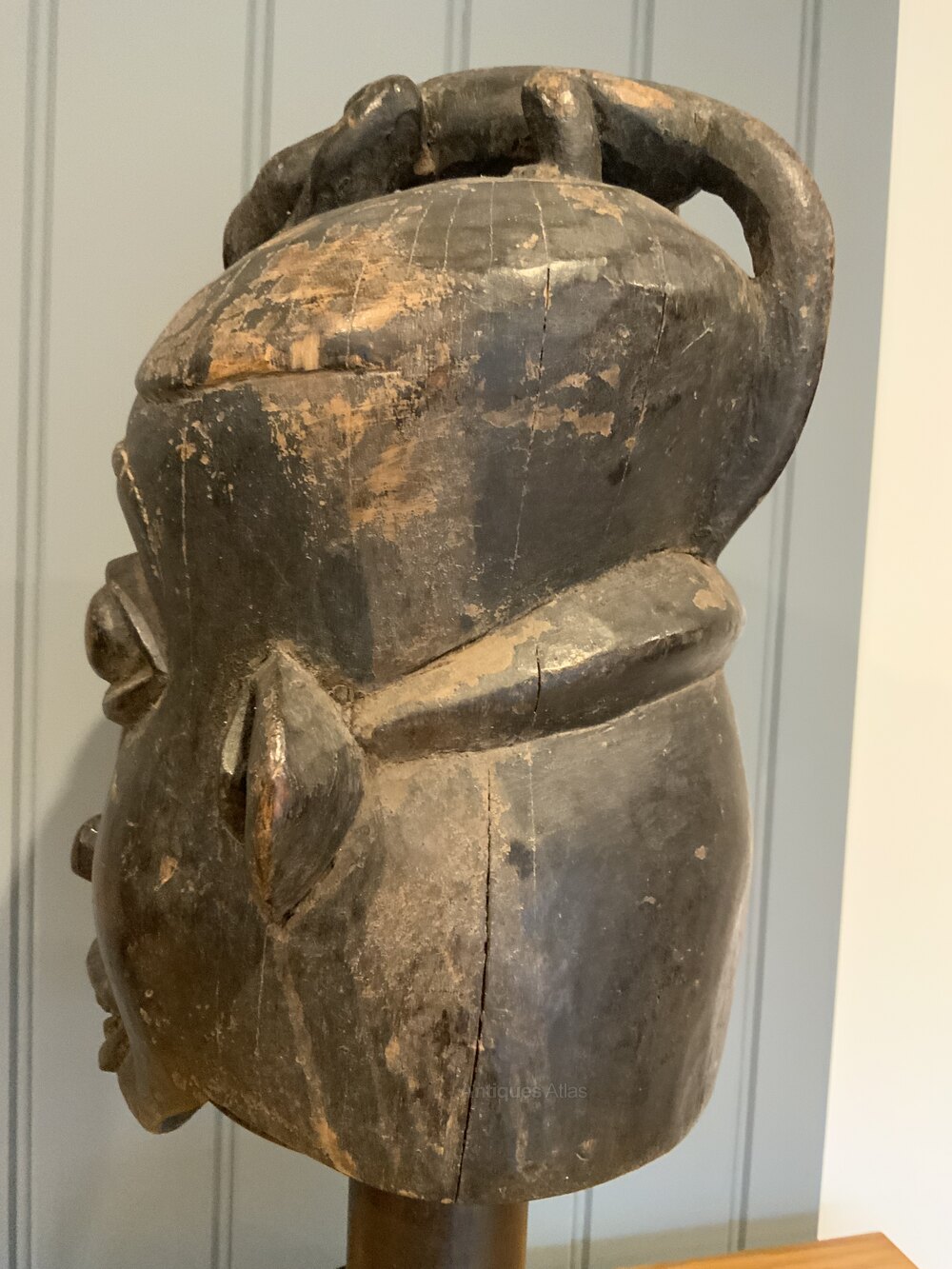 Tribal Art - Bamileke Helmet Mask on a Turned Stand