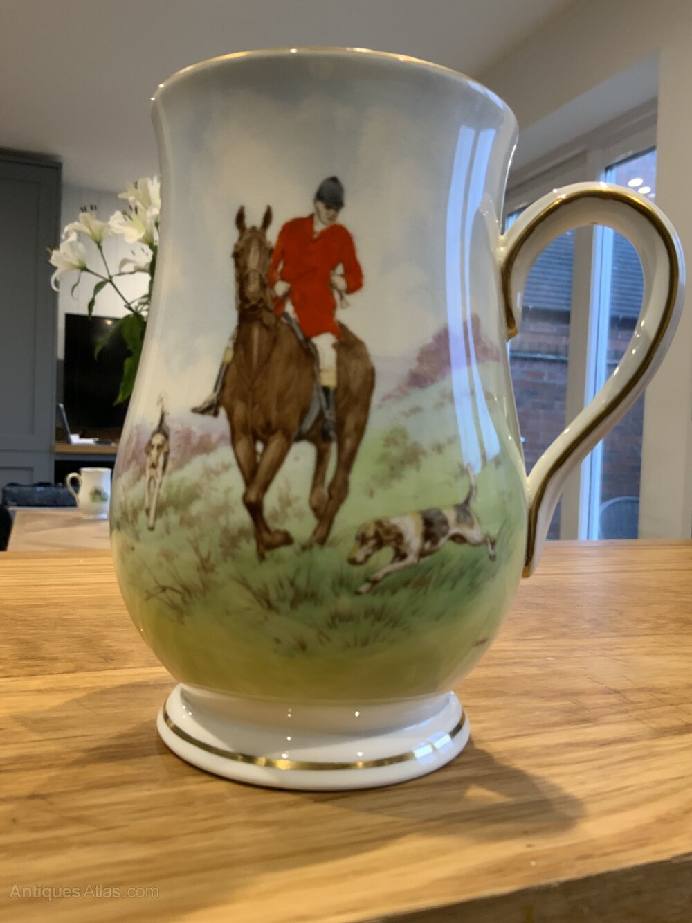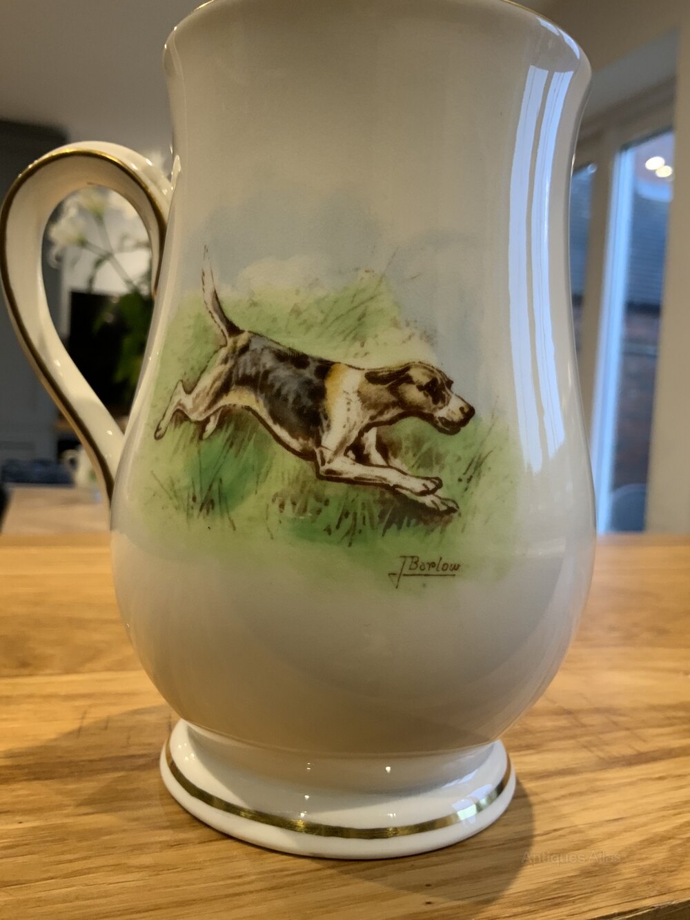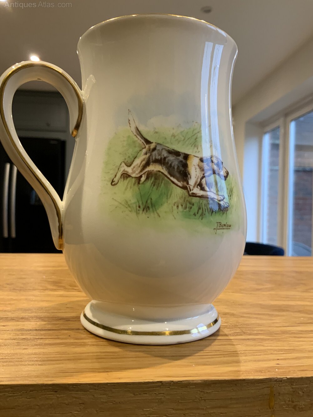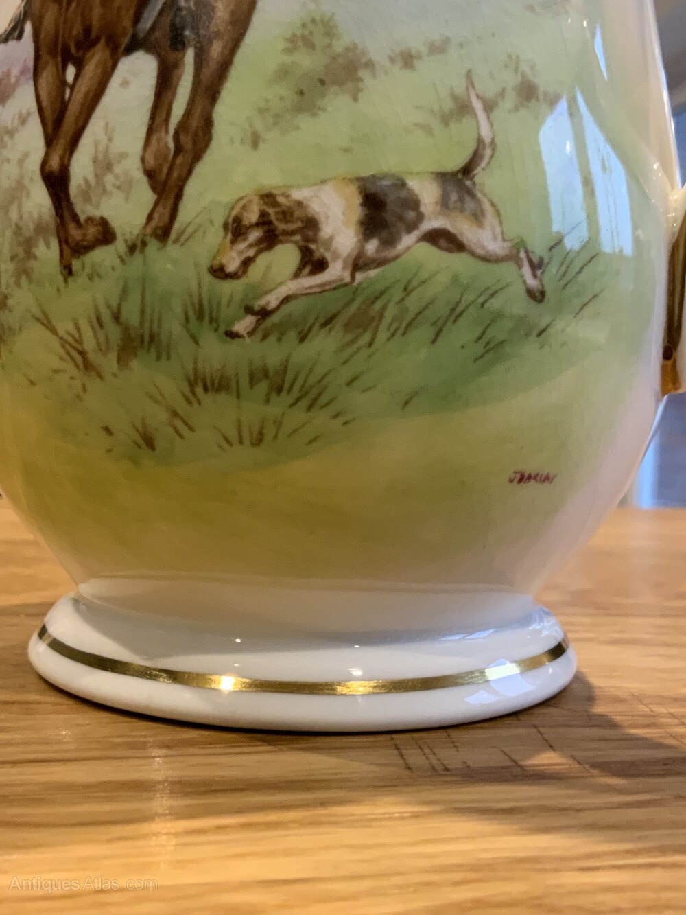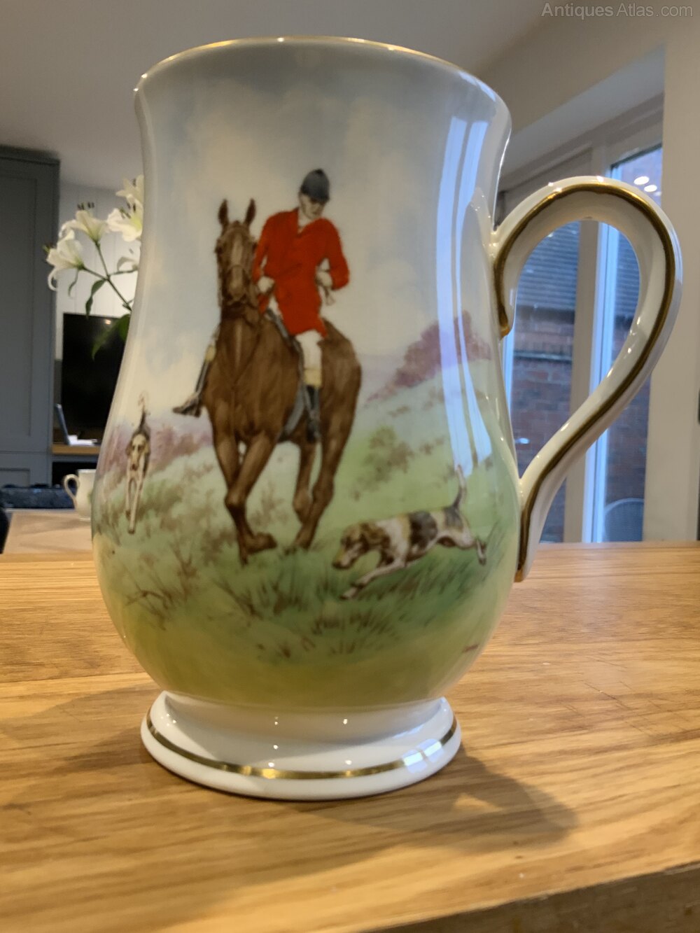 Antique Royal Crown Derby Gold Rimmed Hunting Tankard Signed BarlowLovely colourful hunting scene to the front