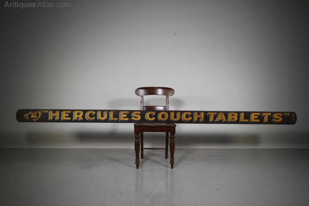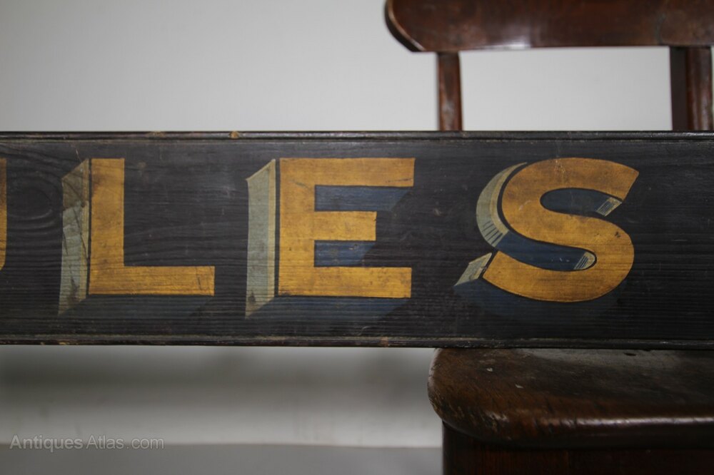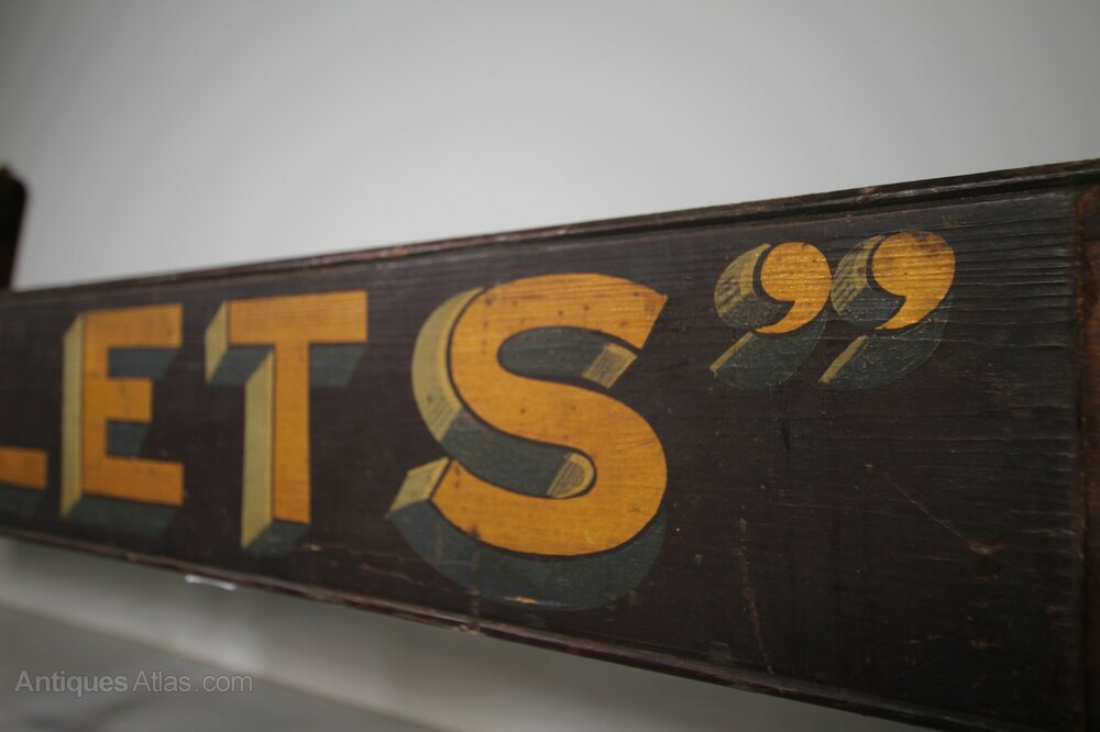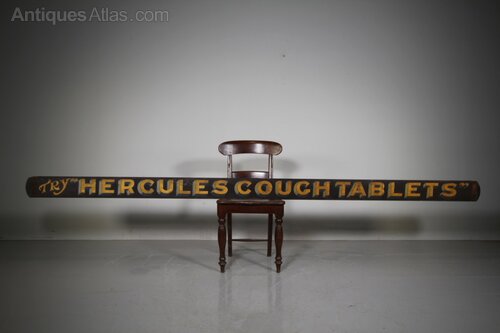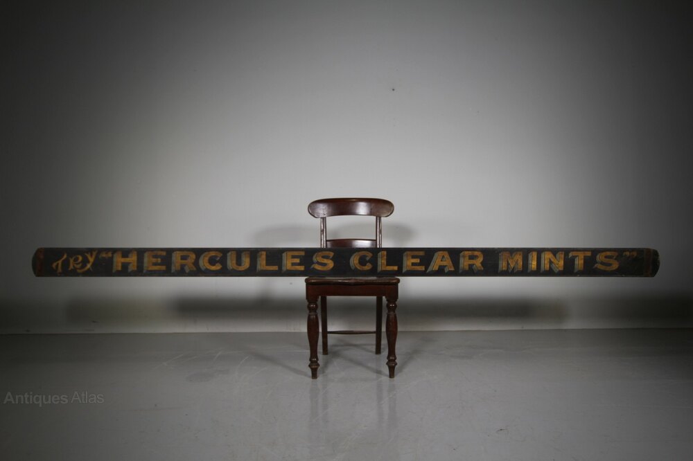 This is a wonderful English 19th century original painted pine and hand sign written antique advertising shop sign that is double sided with advertising for Clear Mints and Cough Tablets. Most probably from a 19th century Chemist / apothecary shop, as it advertises through sweets, this is a completely original painted pine English antique sign, not one of the many fakes out there! This is a long, large scale example in wonderful, totally original condition. Dates to around 1880-90.