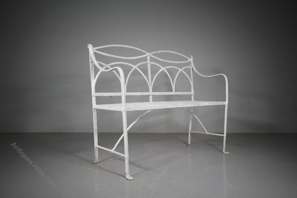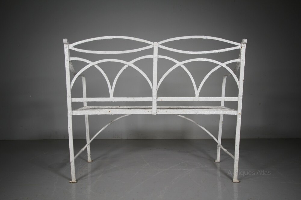 Regency English Antique Garden Bench Wrought Iron
