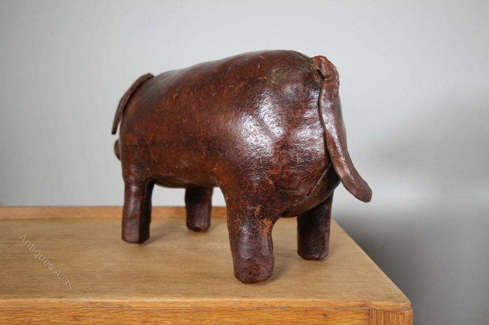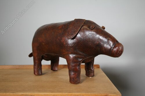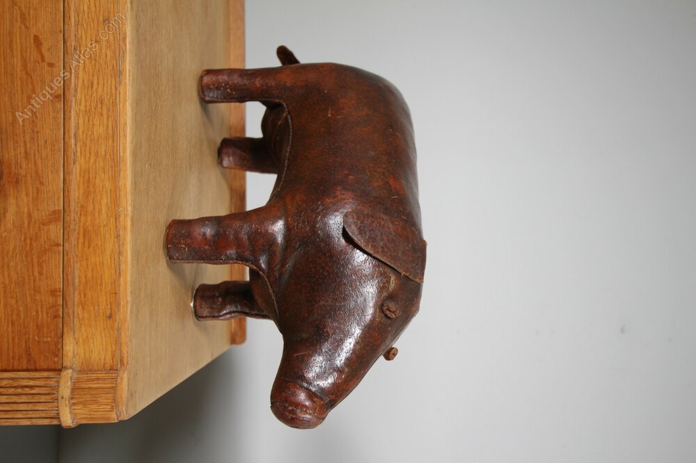 A lovely rich brown leather Omsera pig, an early example with the longer snout, ears and tail. In excellent condition, stands firmly and is all very intact. A lovely smaller size which the early ones are. Made by Omersa and retailed by Liberty London.