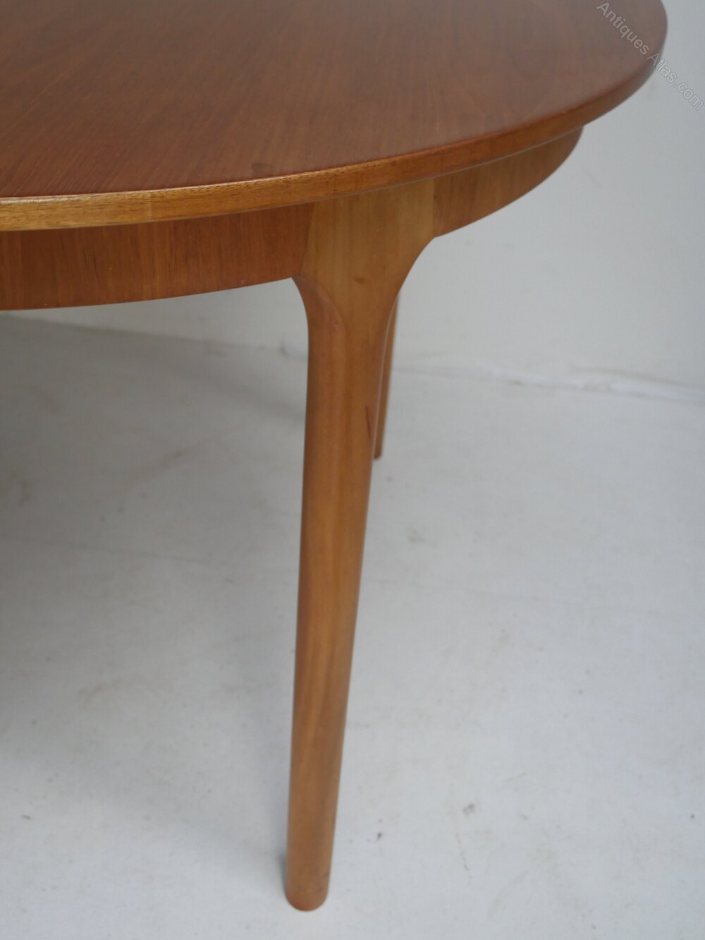 A good quality circular dining table in teak, with additional central leaf, opening to a width of 168cm, the table will seat 6-8 people. all in god strong condition, a few marks, the ends are slightly sun faded, the table has a label for MacIntosh Furniture from Kirkcaldy Scotland.A few extra photos available.