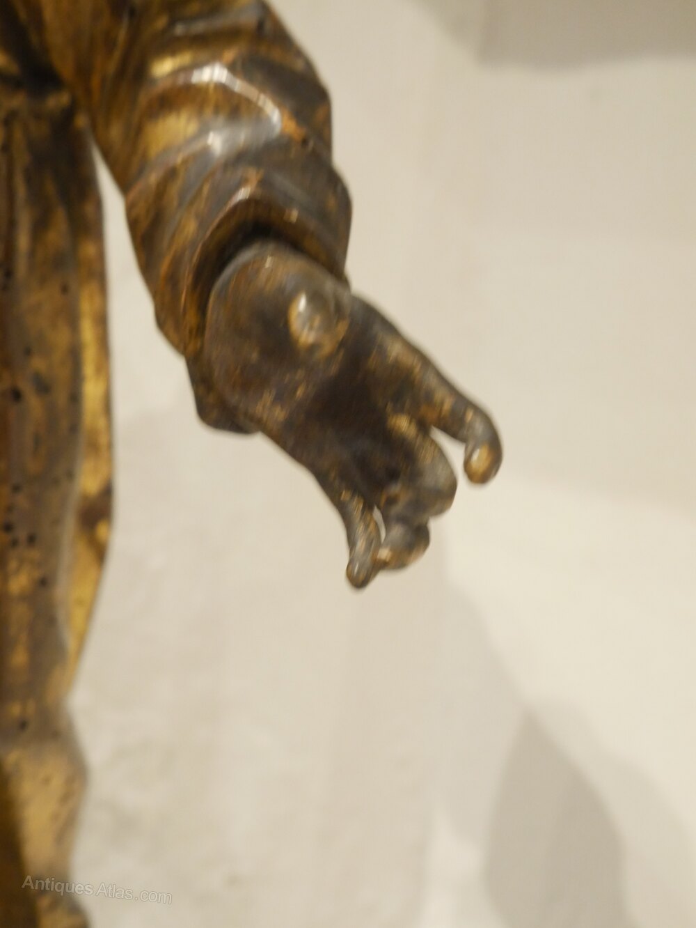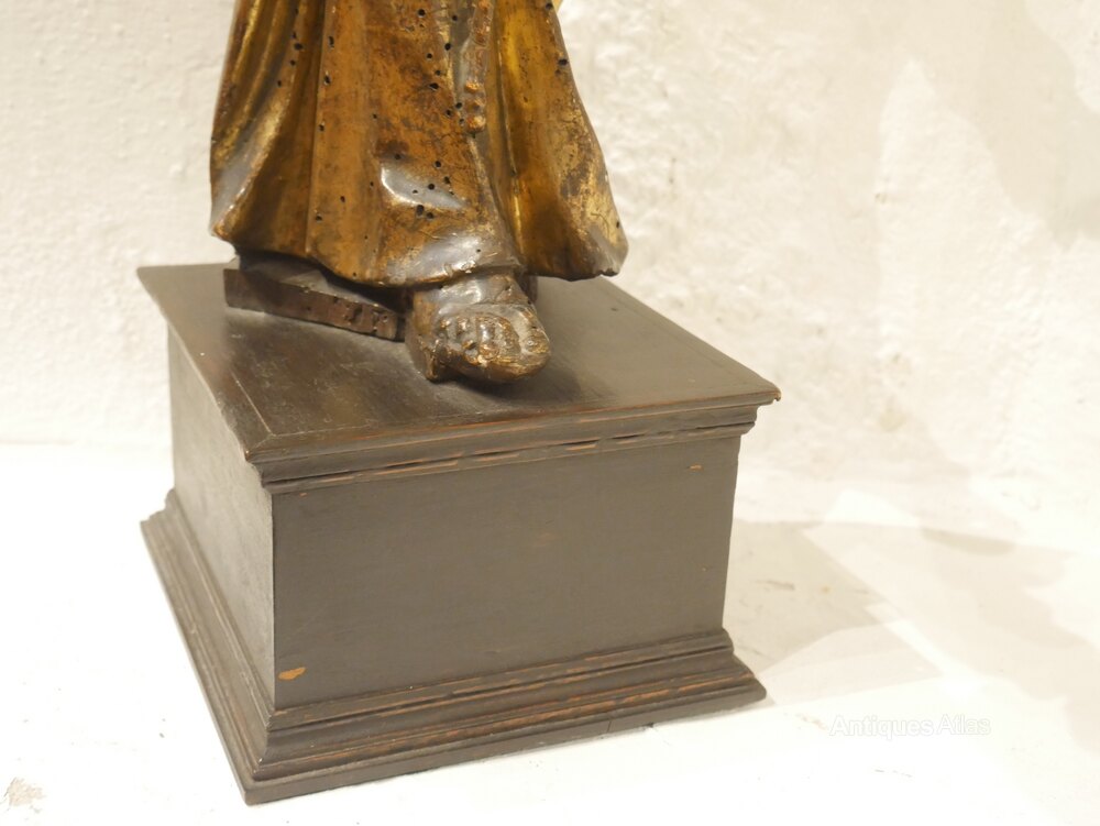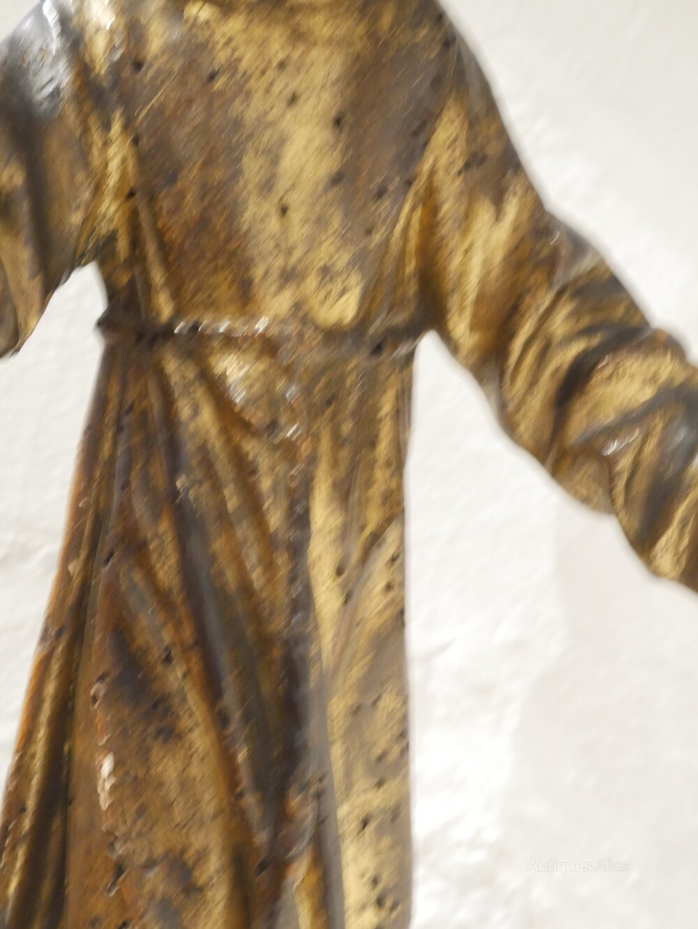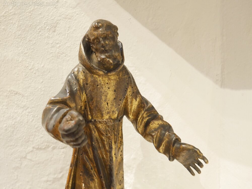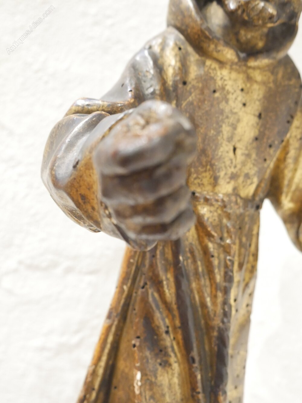 A well carved 17th century figure of Saint Francis, likely to be Italian, carved in walnut with gilt decoration, standing on a later base. Some extra photos available.Currently free UK mainland delivery available.