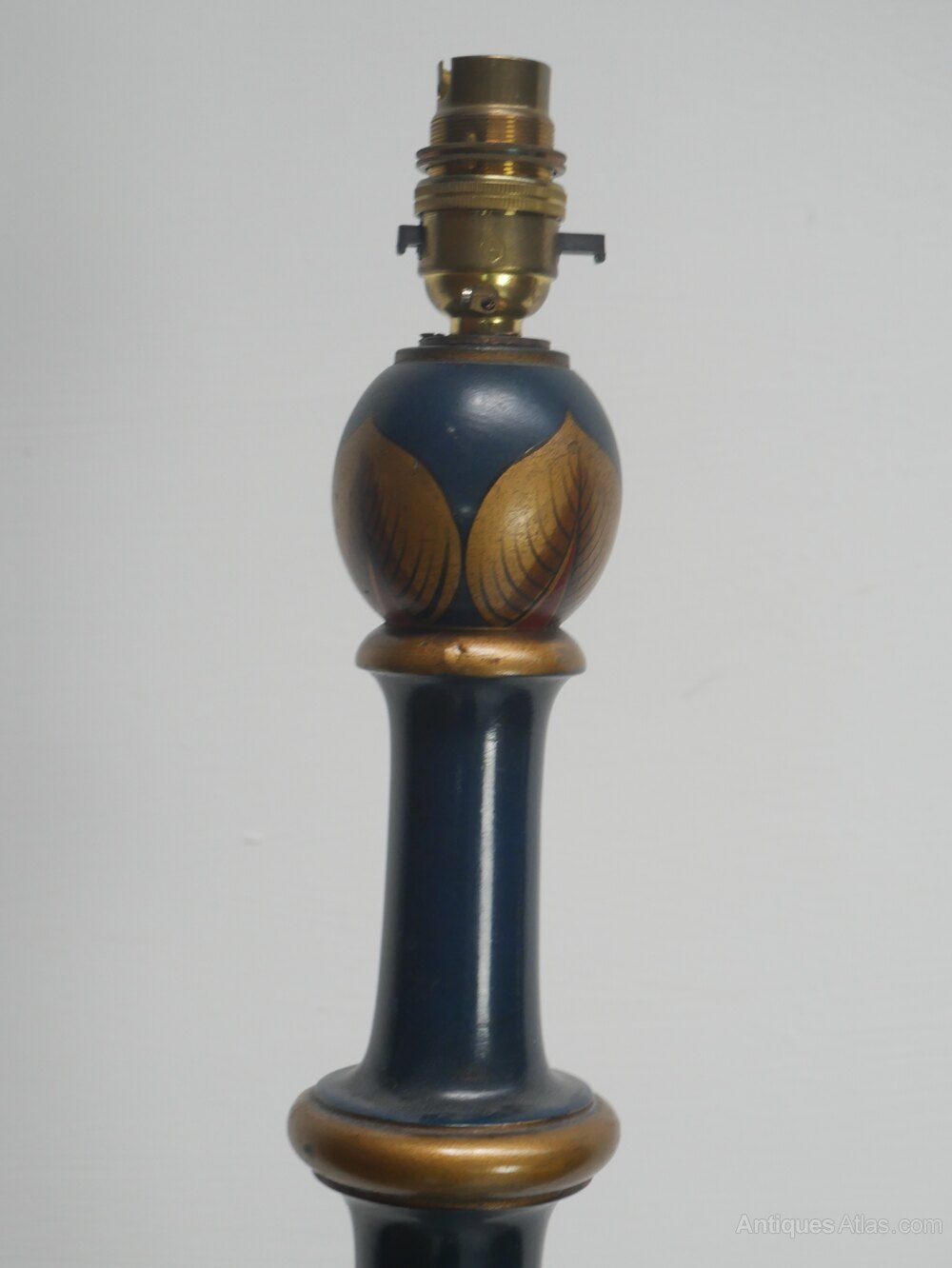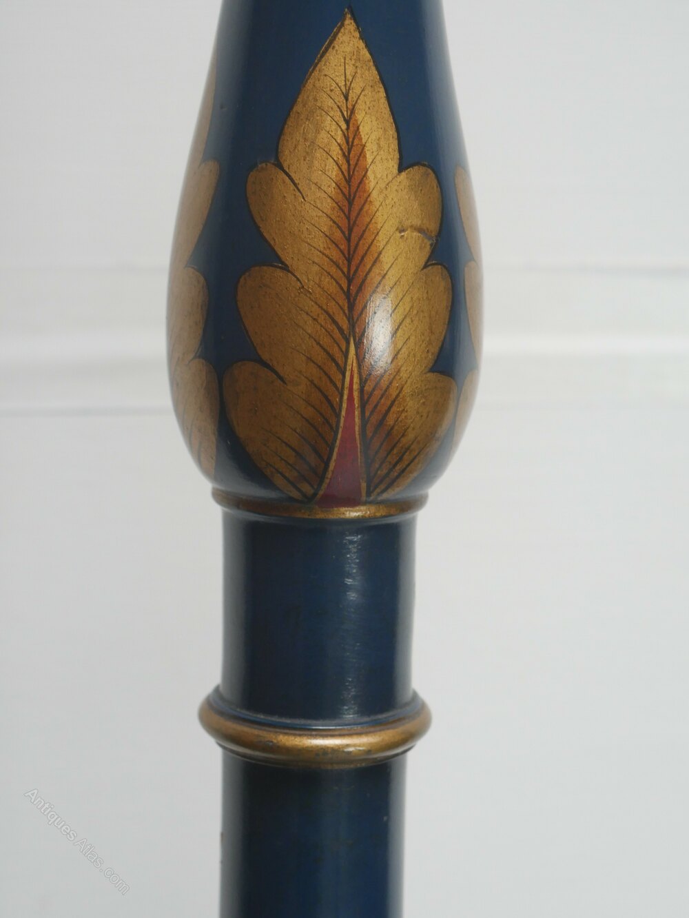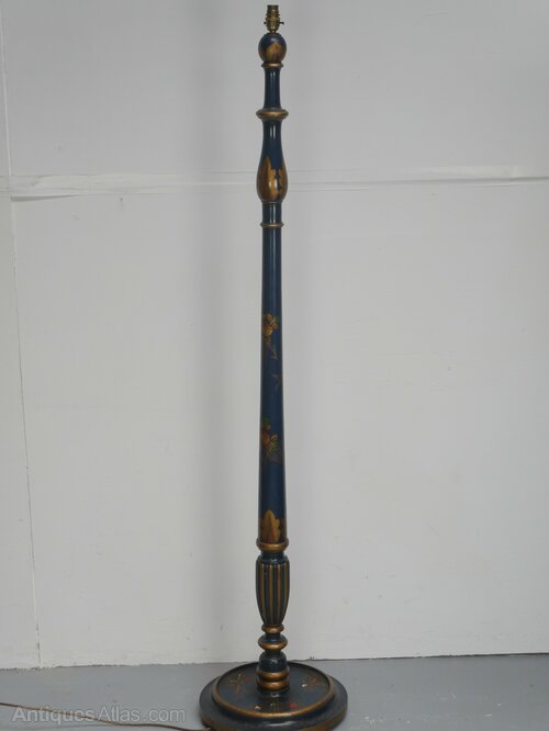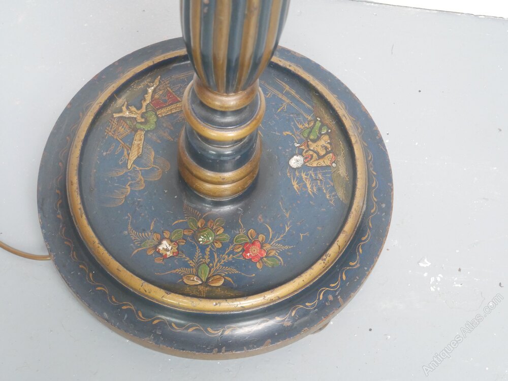 A lovely 1920s tall floor standard lamp, a blue background base coloured lacquer with a decorative chinoiserie design, all in good strong condition, pat tested and ready for use.Currently free UK mainland delivery available.