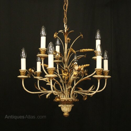 French 9 Light Polychrome Antique Chandelier