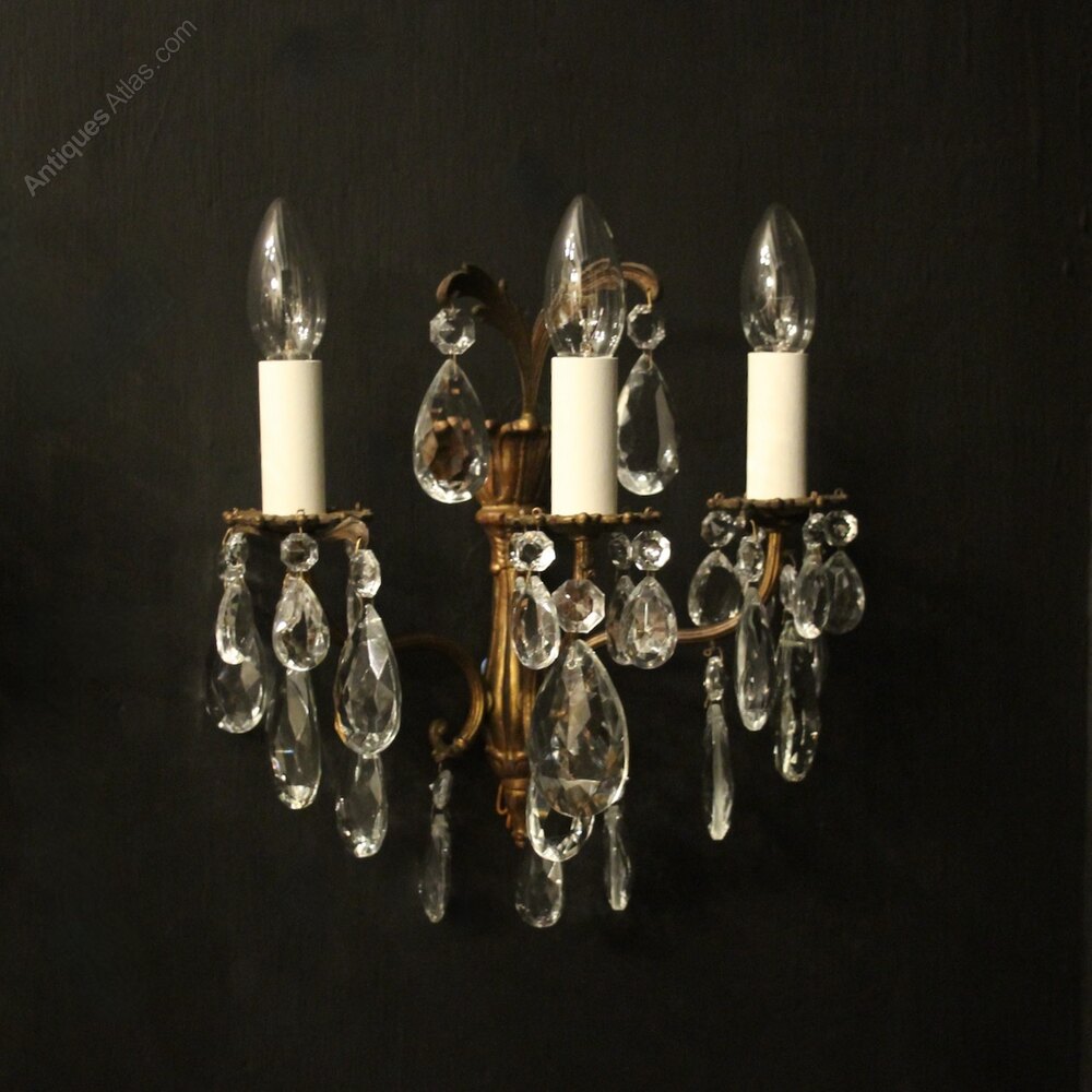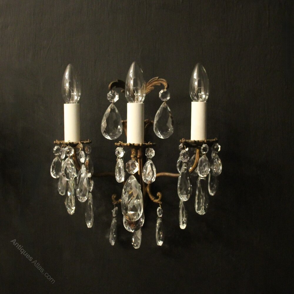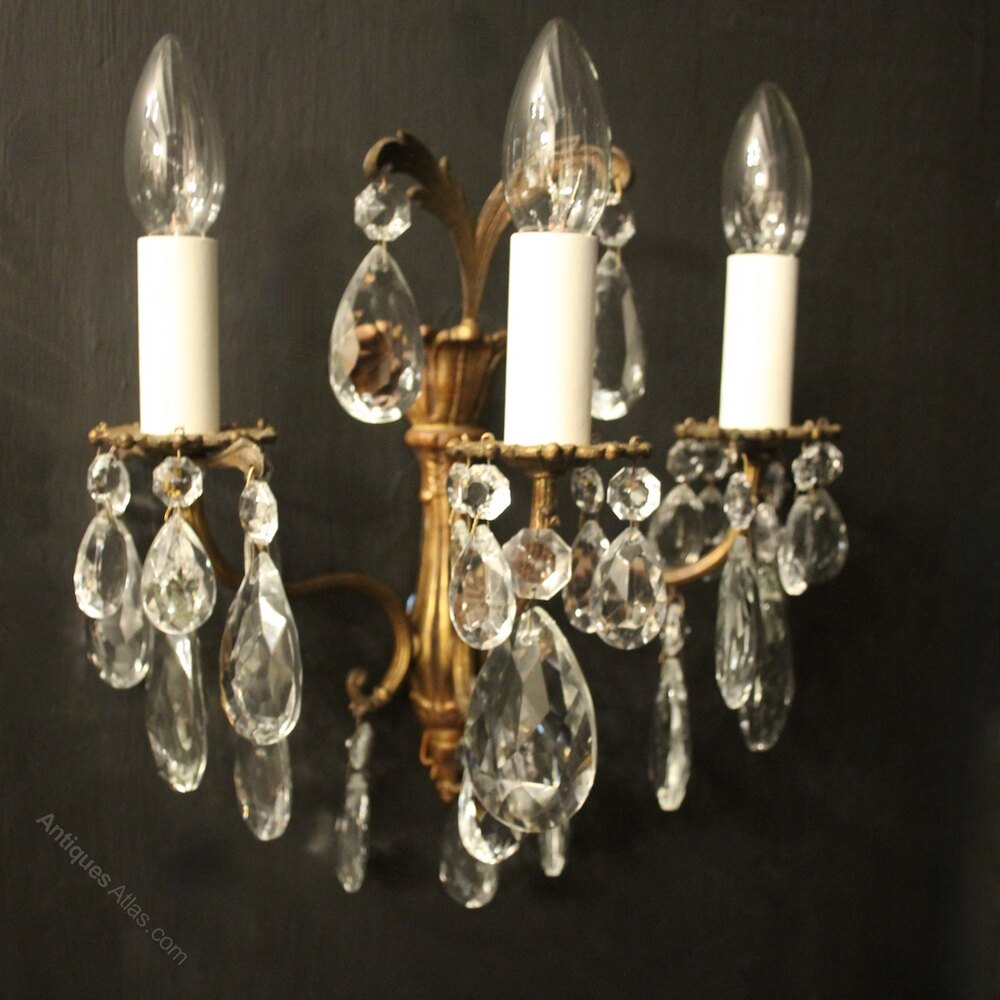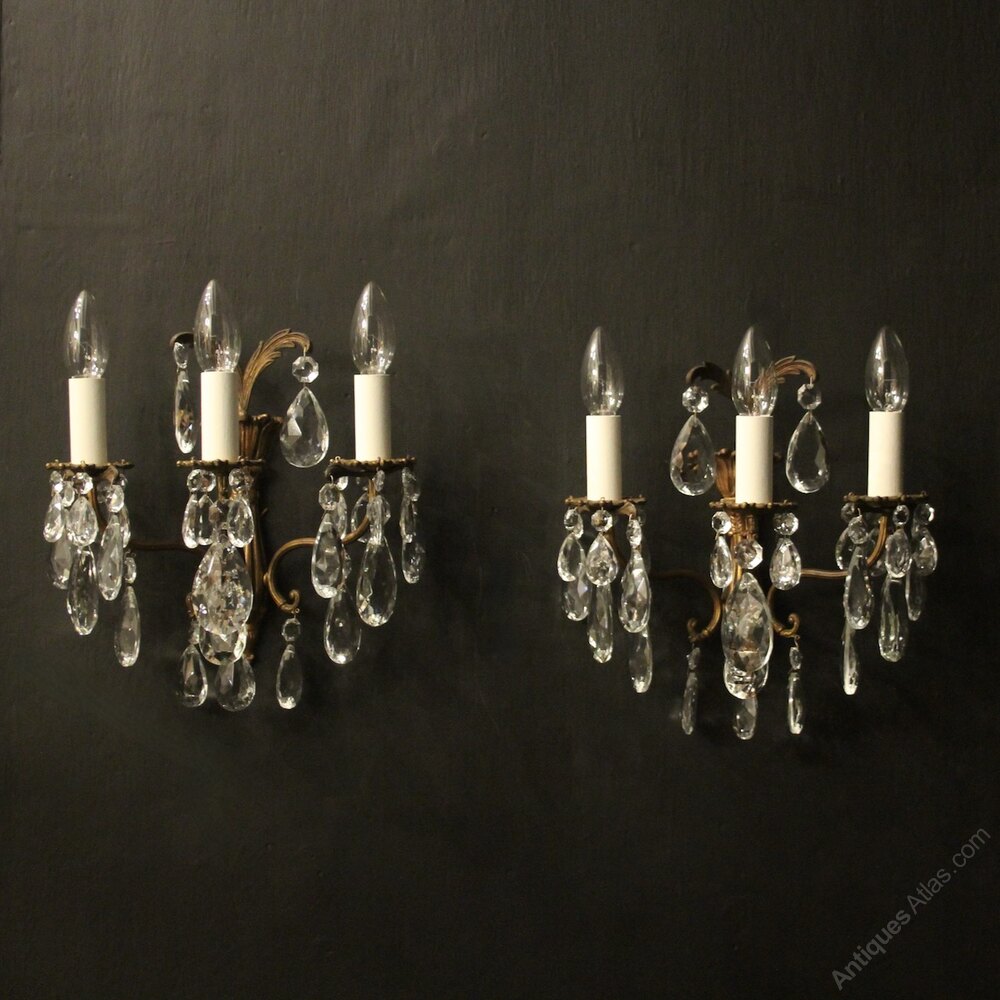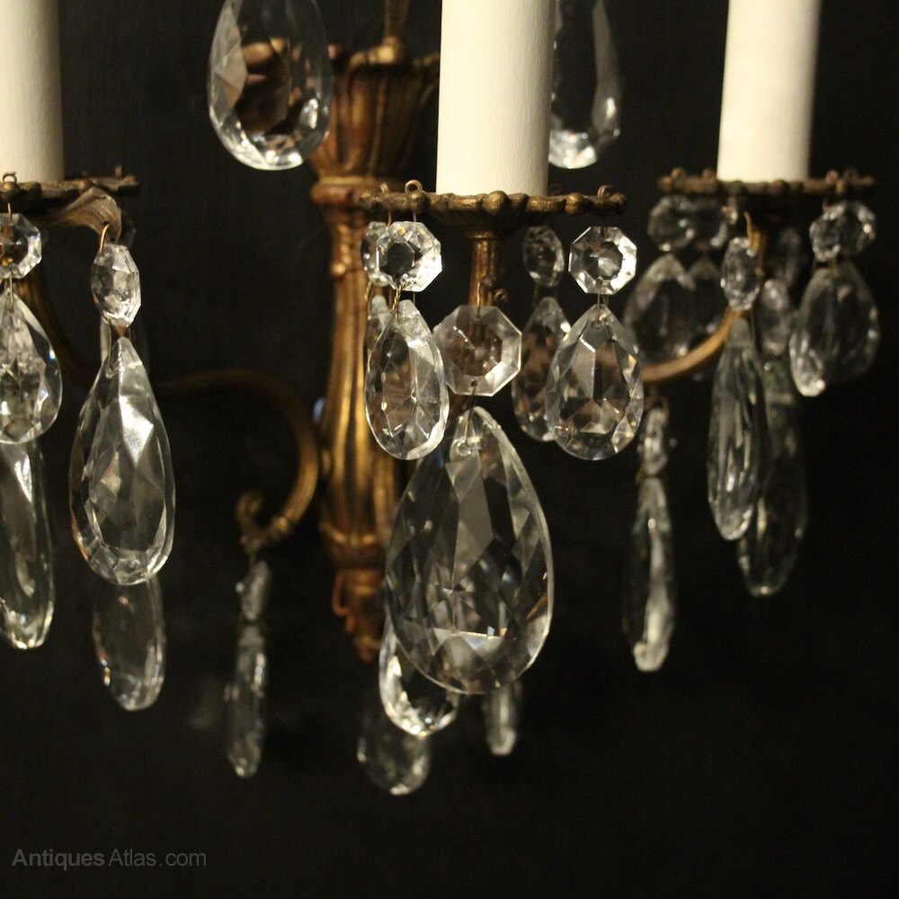 French Pair Triple Arm Antique Wall Lights