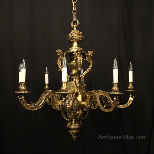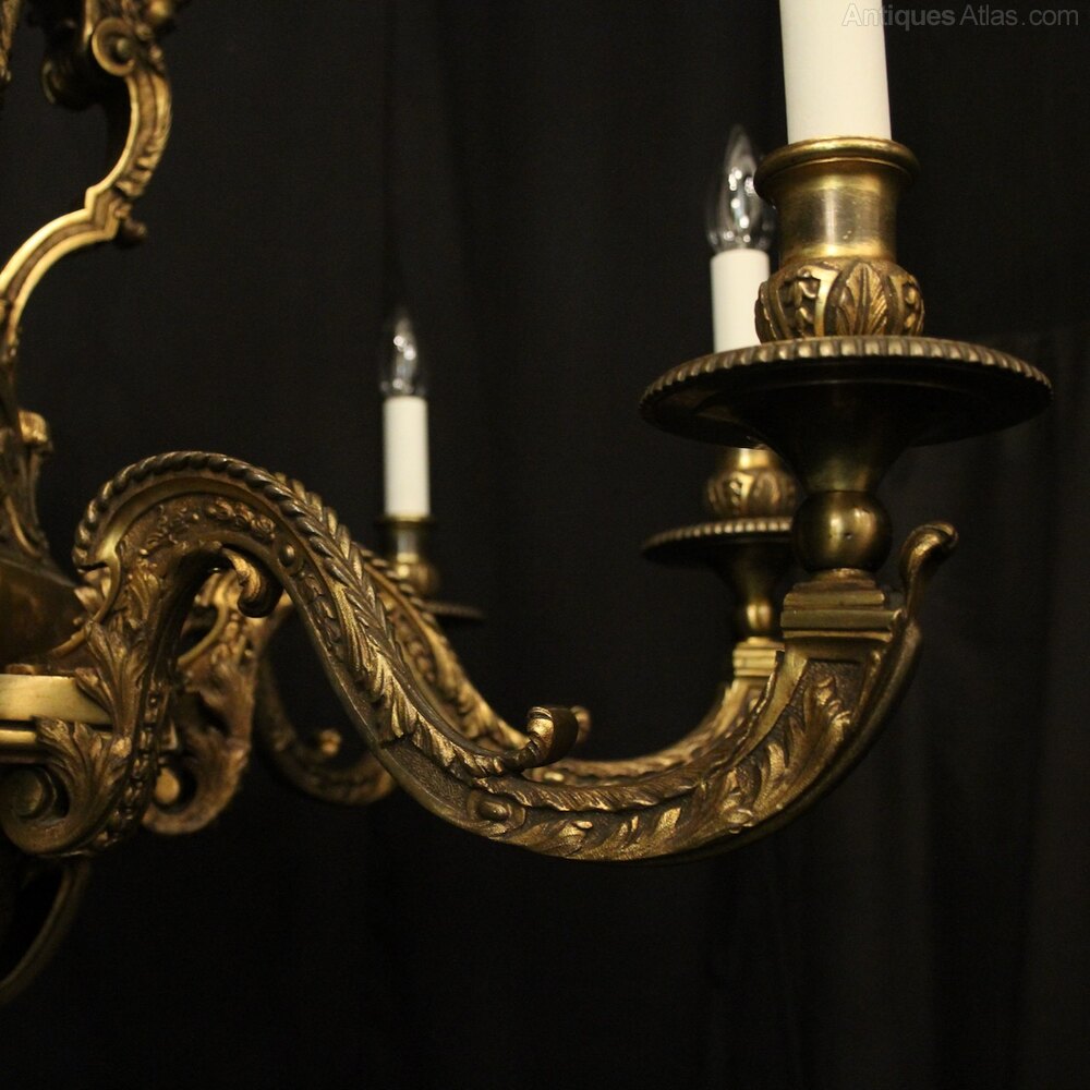 French Gilded Bronze 8 Light Antique Chandelier
