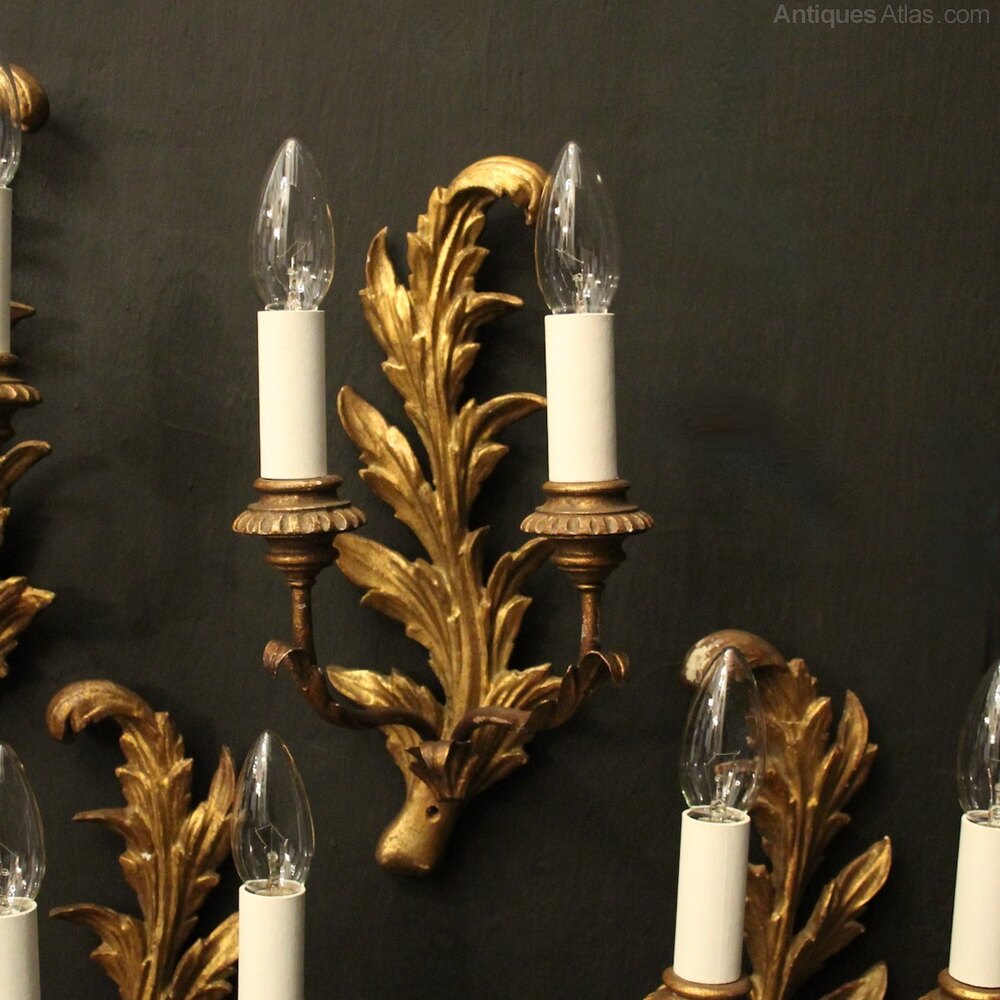 French Giltwood Set Of 4 Antique Wall Lights
