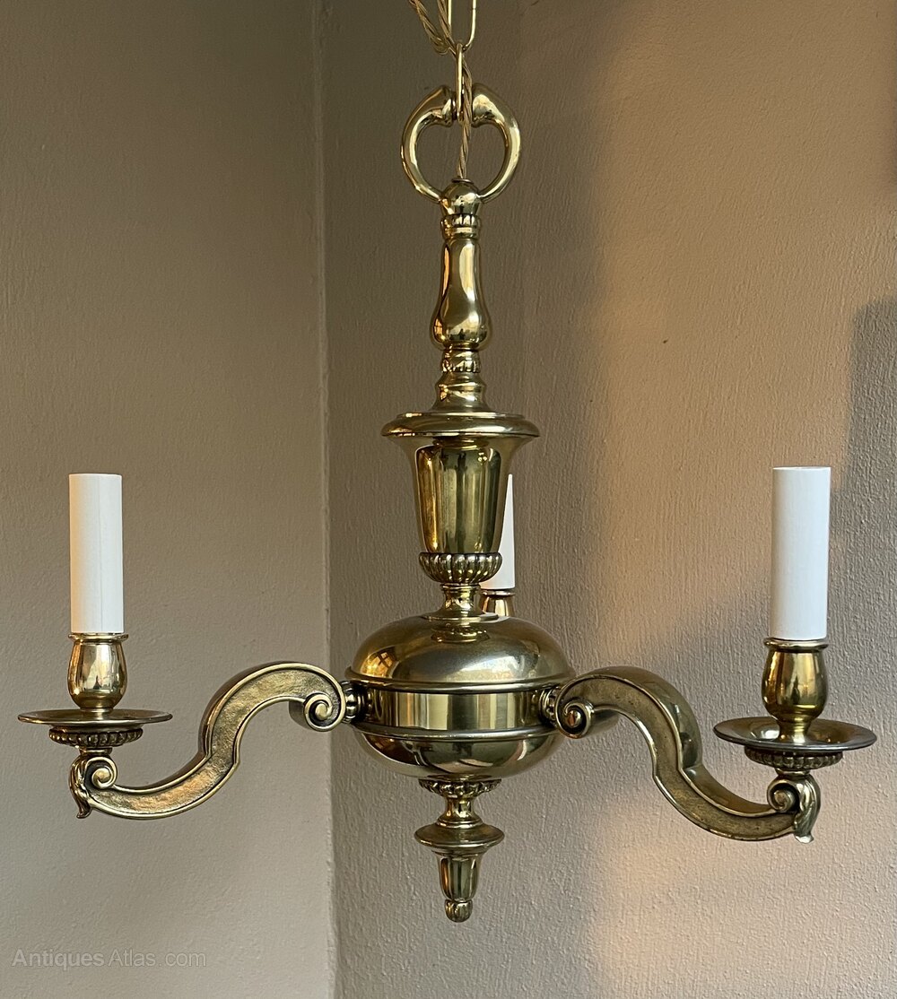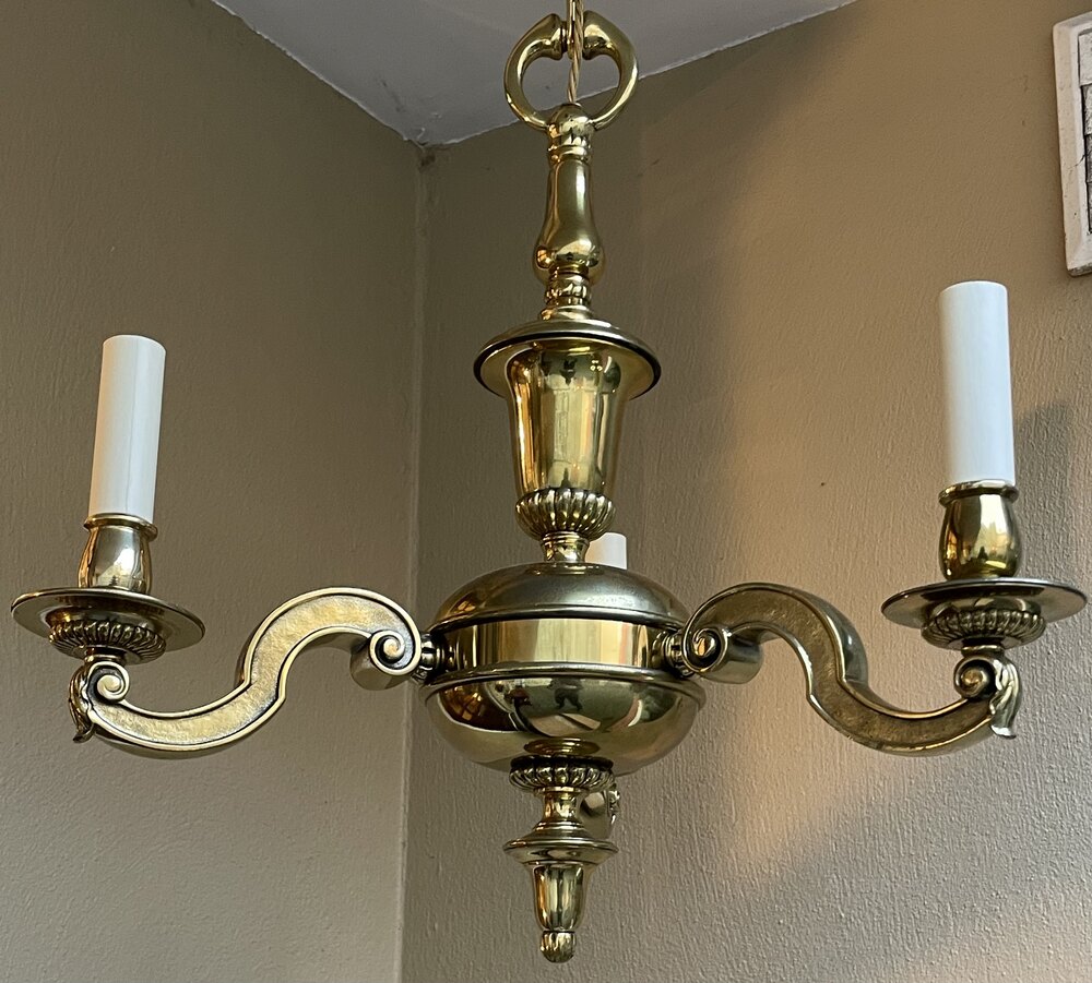Early 20th Cast Brass Three Branch Chandelier