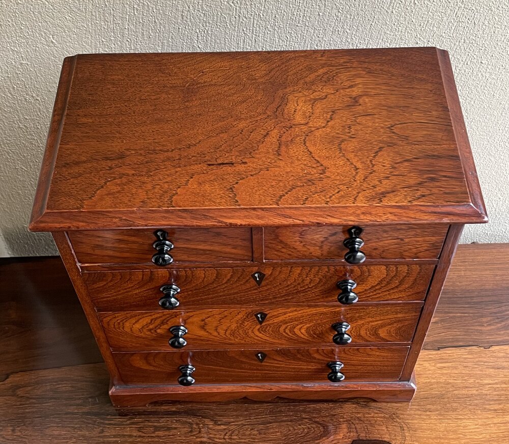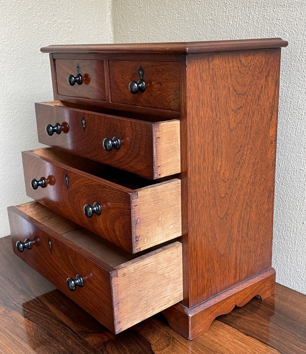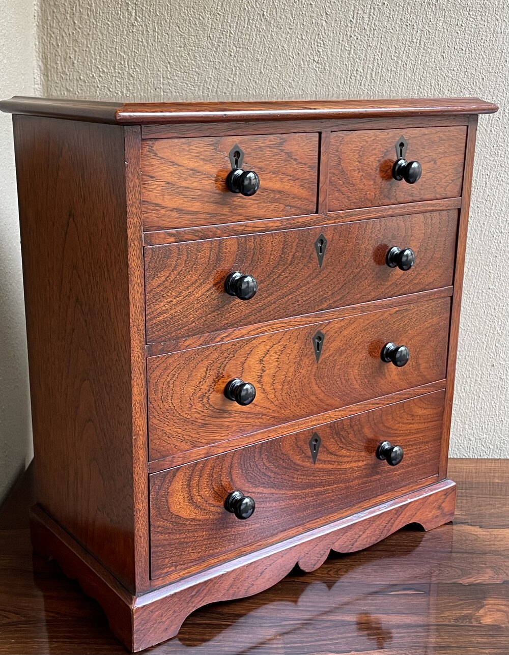 A fabulous late Victorian mahogany miniature chest of drawers…the perfect jewellery box.Offered in superb condition, cleaned, waxed and polished.