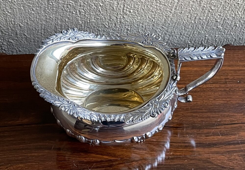A fantastic quality Edwardian solid silver cream milk jug with brightly gilded interior and cast decoration. A very fine example good weight at 240 grams and offered in superb condition. Fully hallmarked for London 1906William Rand Antiques Limited, purveyors of fine furniture, English silver, lighting and Manx paintings. A family run business with a shop in the Isle of Man and an online presence, serving a local and international client base. We pride ourselves on selling quality antiques, where required, sympathetically and authentically restored, ready to be enjoyed by the next generation of custodians.