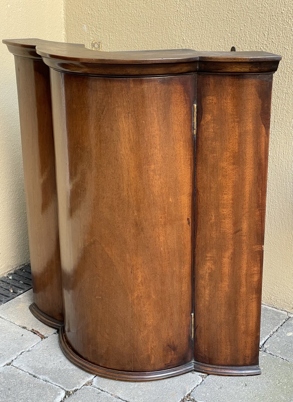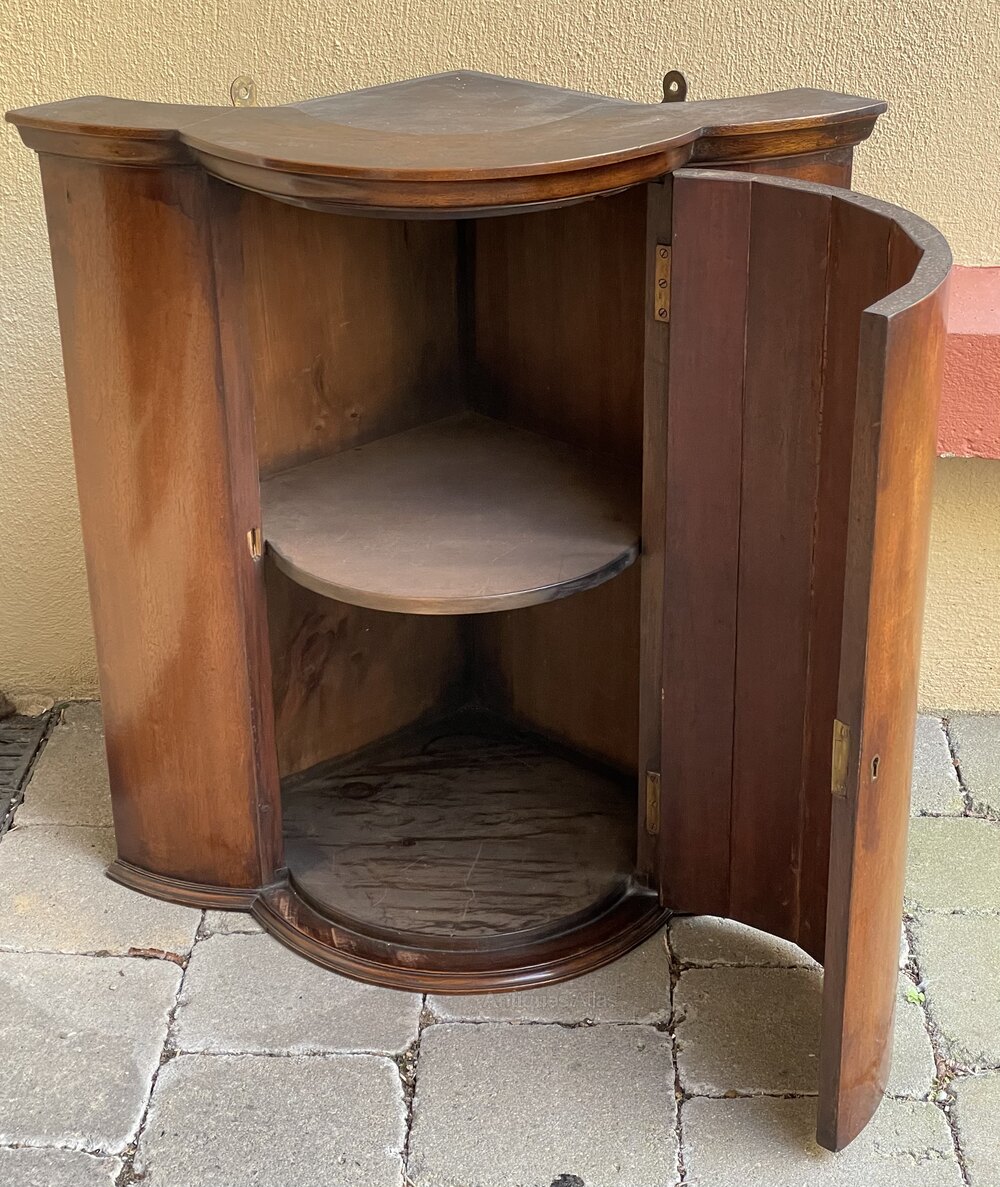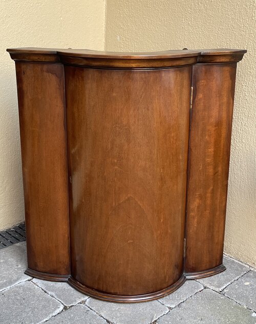 A good late 19th century mahogany bow fronted corner cupboard of small proportions. A delightful piece at only 55 cm wide x 60 cm high.In excellent condition. With lock but key absent.