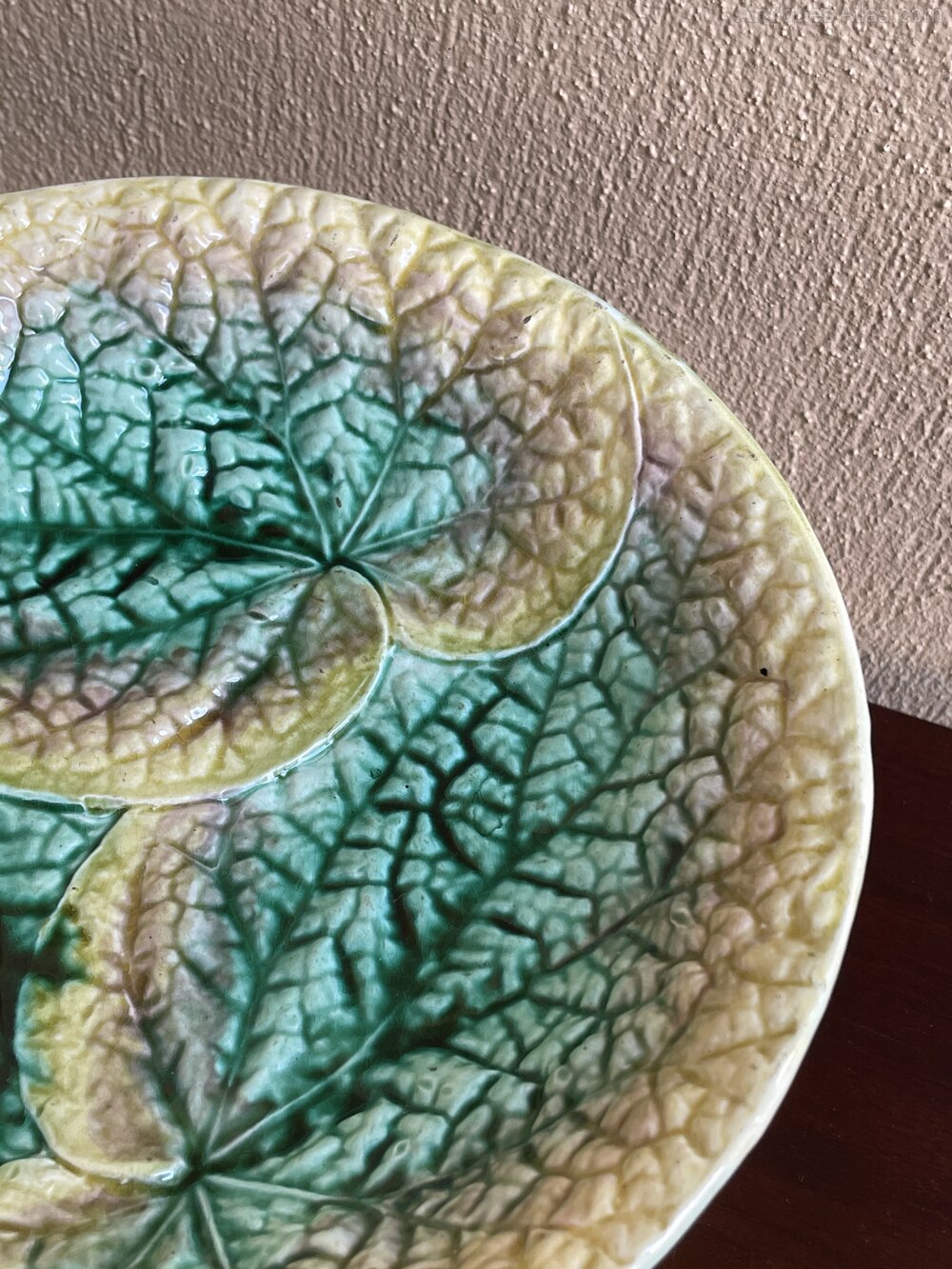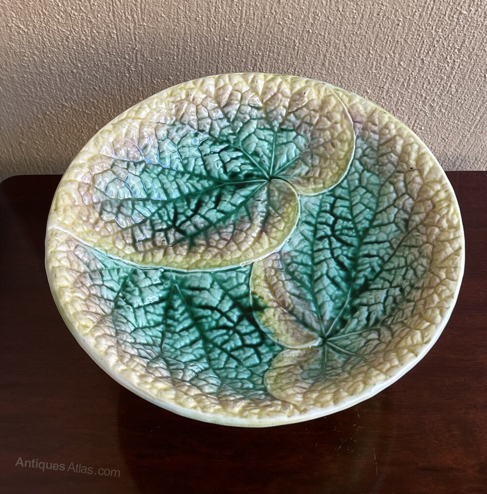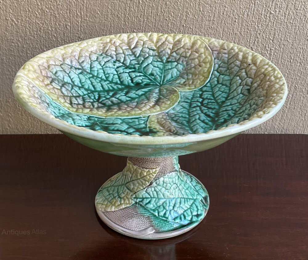 A colourful and fun Victorian Majolica begonia leaf comport / tazza.In excellent condition, some light crazing commensurate with age.