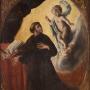 Antique Italian painting from the 18th century. Artwork oil on canvas depicting a religious subject Saint Anthony of Padua and baby Jesus of good pictorial quality. Painting of exceptional size adorned with an antique wooden frame, not coeval, sculpted and gilded with some signs of the time. Artwork painted inside an oval, on canvas and rectangular frame (see photo).Corners of the painting pleasantly painted with decorations (see photo), the saint represented at the center of the scene with the lily beside it, symbol of purity. Baby Jesus depicted at the top right with winged cherubs at his feet (see photo). Artwork of good brightness, ideal to be placed in an important living room or study, for antique dealers and interior decorators.
