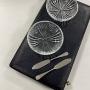 Dimensions: dishes 10cm in diameter, knives 11cm long, box 30cm x 16cm