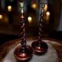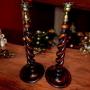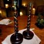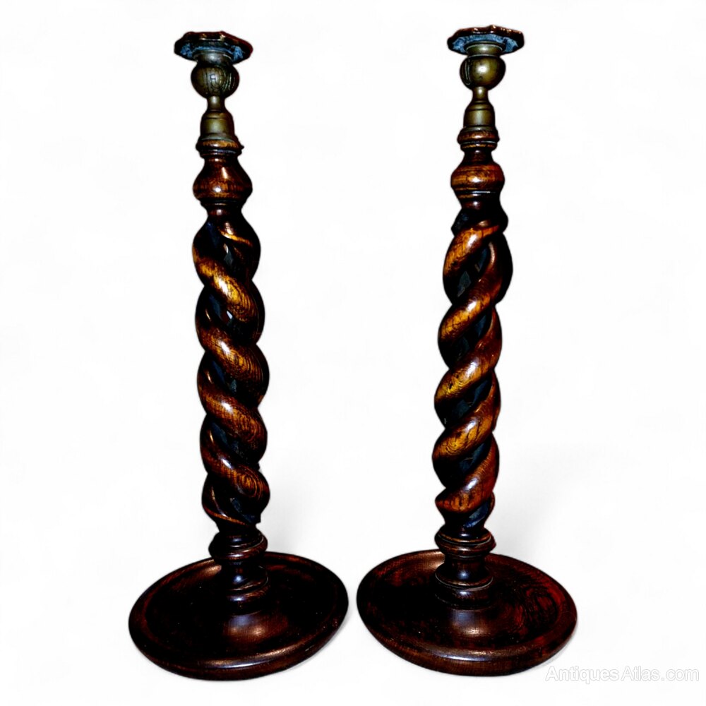 Pair Antique Very Tall Oak Open Twist Candlesticks