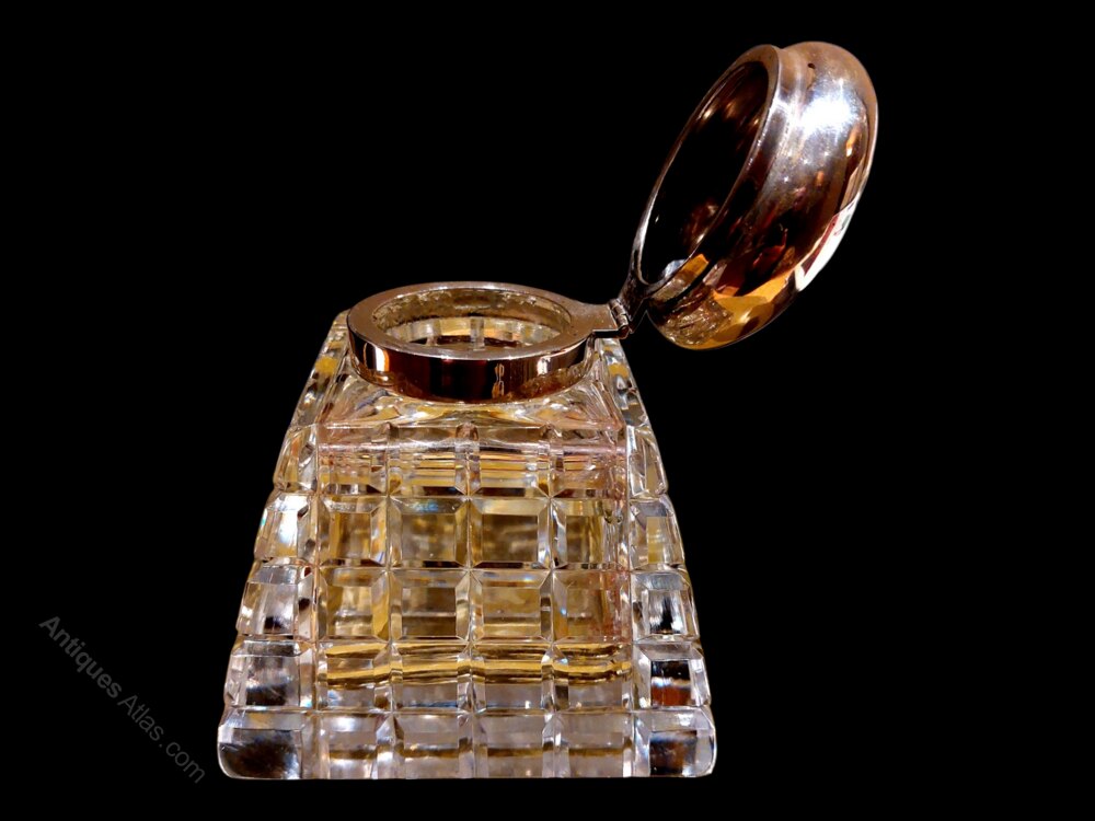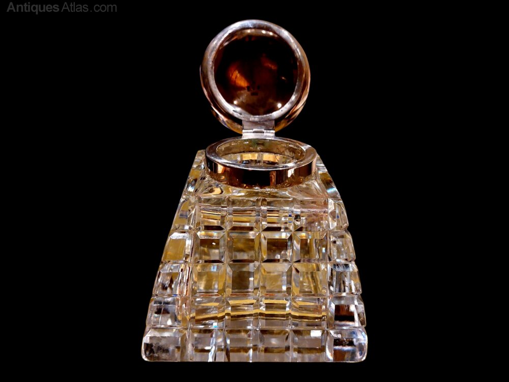 Very Large Swedish Silver and Cubed Glass Inkwell