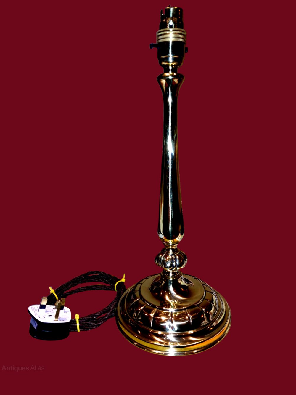 A very smart early 1900s polished brass table lamp. Newly polished and rewired in traditional braided flex to give it that authentic look. Polished to a deep shine and unlacquered. Weighted base. Ready to use with your choice of shade. Very good condition. 14 1/2" tall on a 6" diameter base.UK MAINLAND DELIVERY TRACKED AND INSURED INCLUDED IN PRICE.