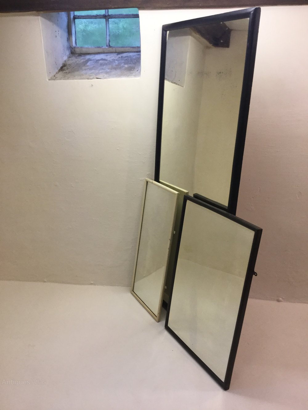Three Antique Shopfitting Mirrors From A Devon Gentleman’s OutfittersDesirable Slightly Smokey Mirror Plates With A Scattering Of Foxing