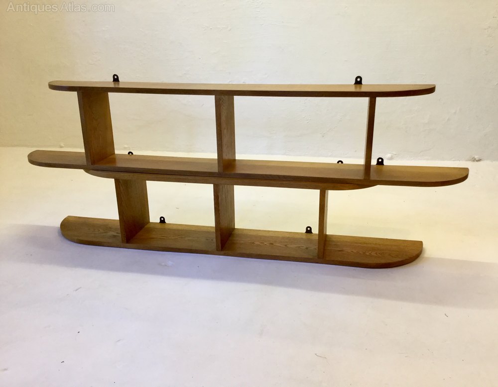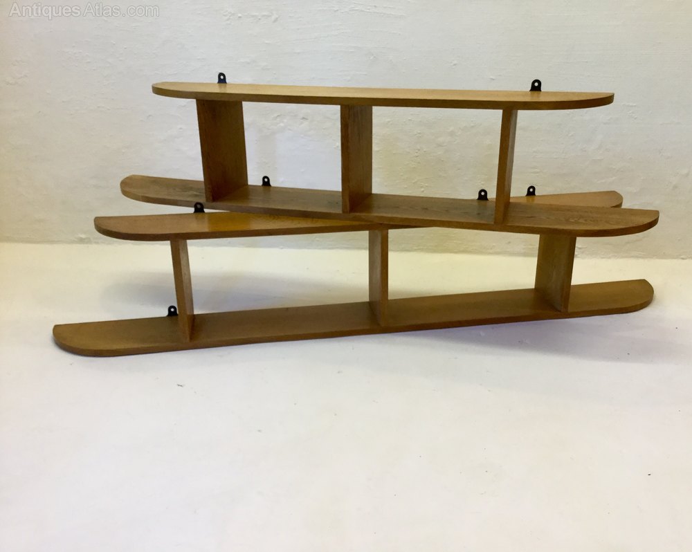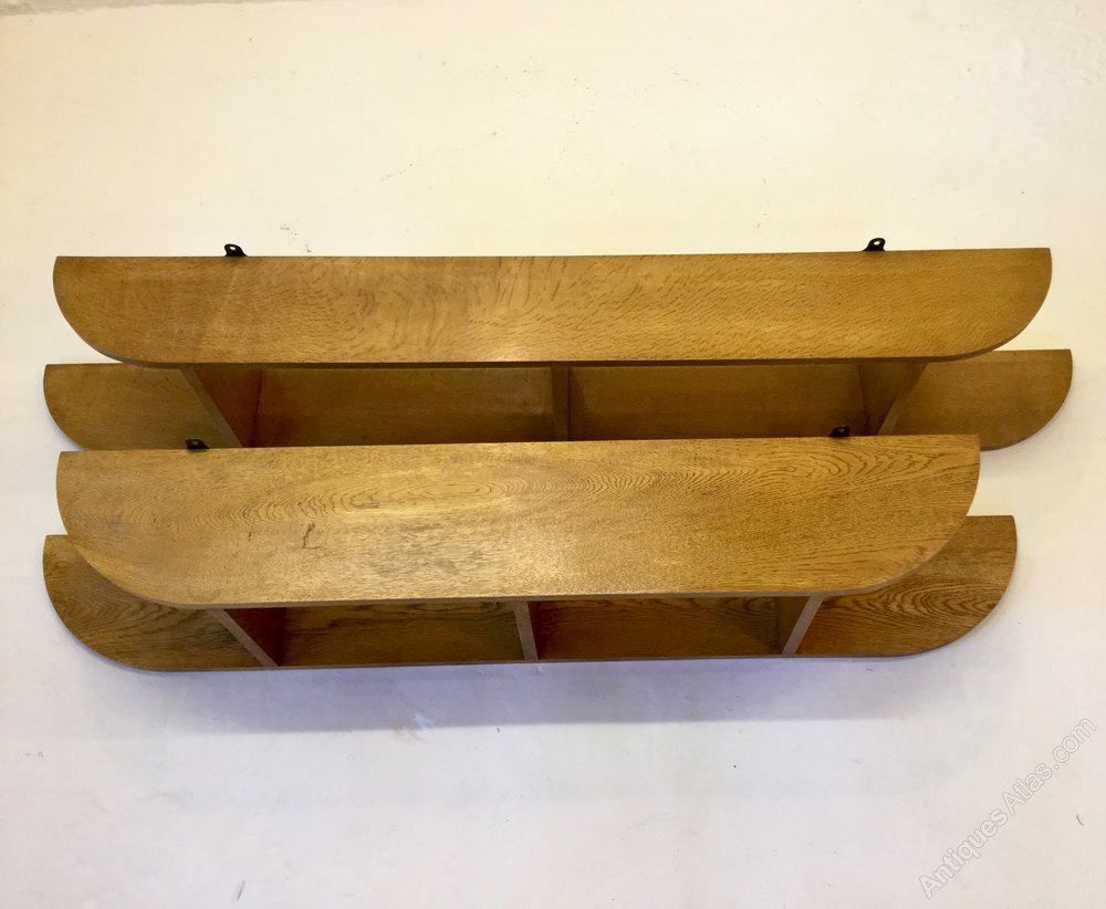 Two Flights Of Oak Cotswold School Wall Hanging Shelves.Very Good Craftmanship Throughout.