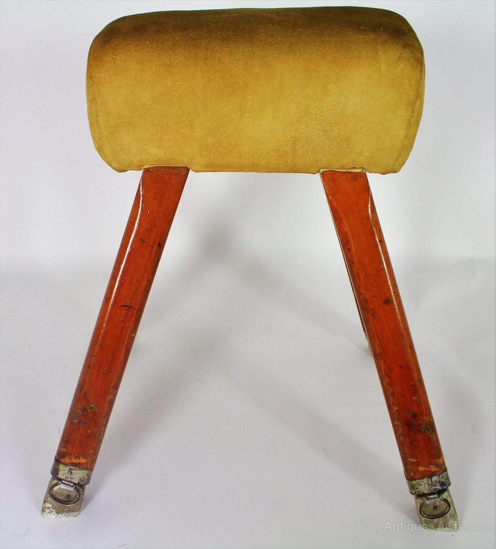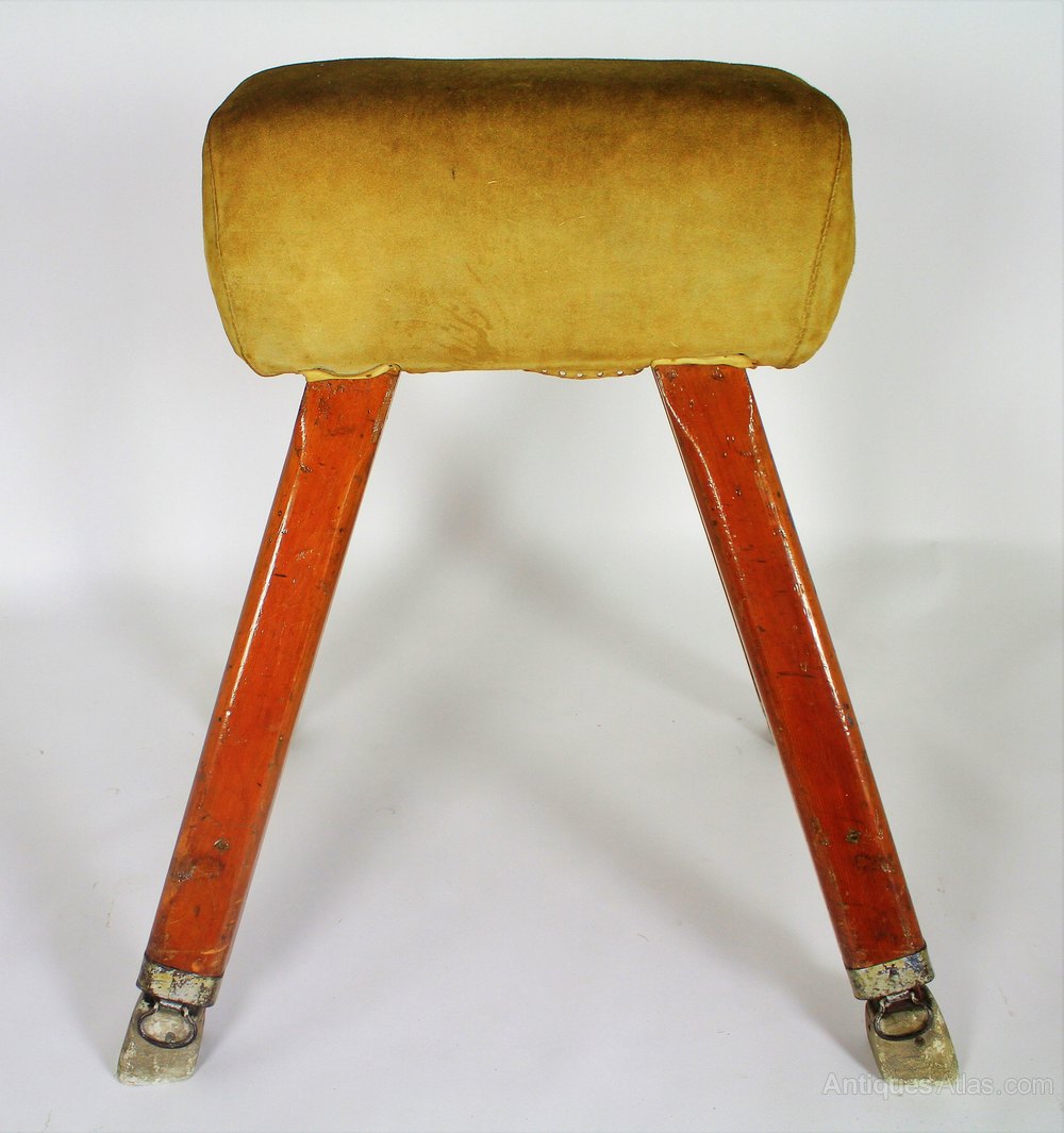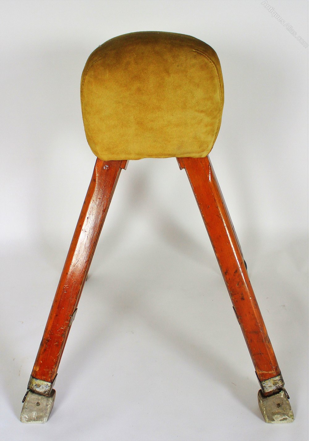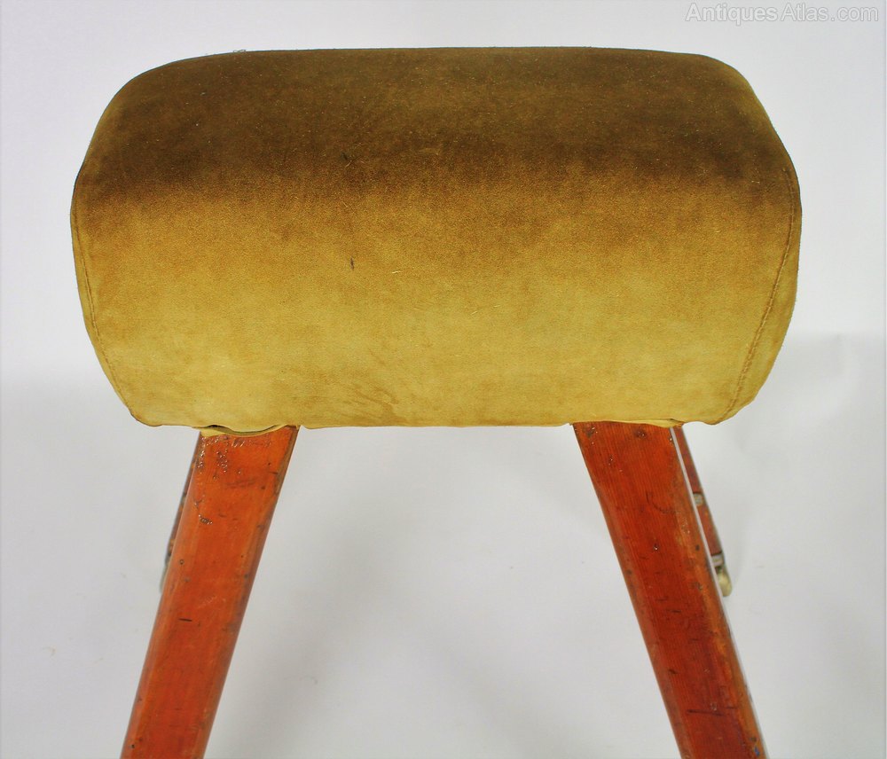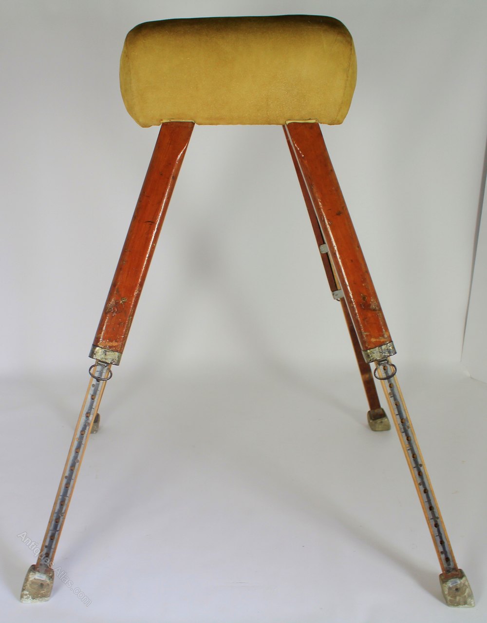 Original small Vintage pine & suede vaulting Pommel horse, fully adjustable in height, solid pine legs with white rubber feet,good original condition, good colour, no damage to suede